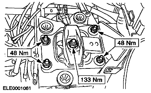 NOTE: The location of the engine mountings and the engine support insulators are given looking from the automatic transaxle to the engine.