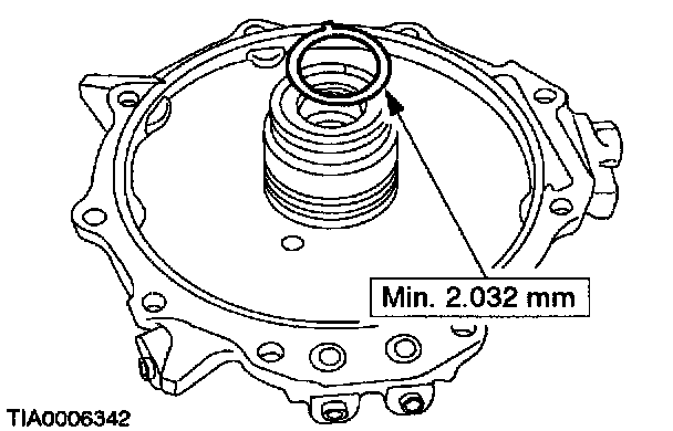 61. NOTE: The opening of the retaining ring must be at the ten o'clock position.