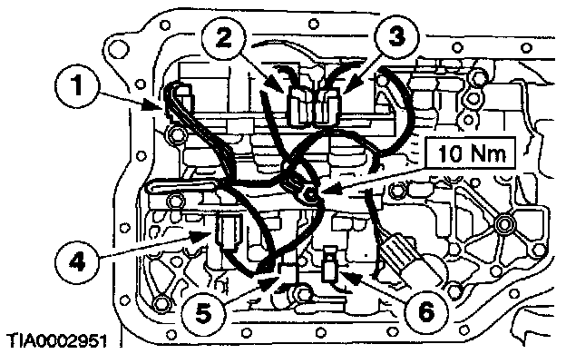 76. CAUTION: Applying too much sealer in the area of the fluid return holes may cause the fluid return holes to become blocked and cause a transmission failure.