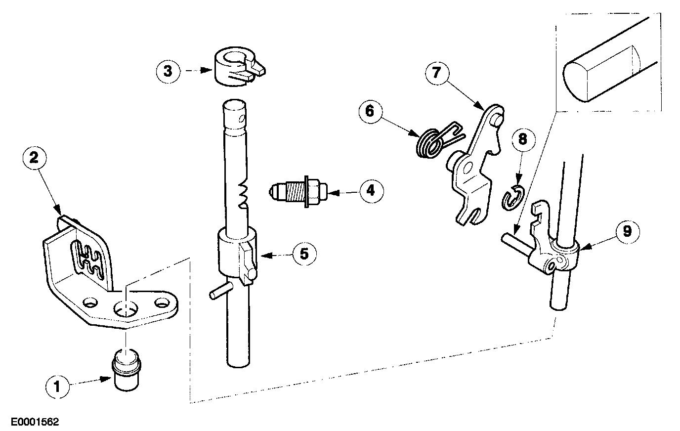1 Fifth and reverse gear selector rod.
