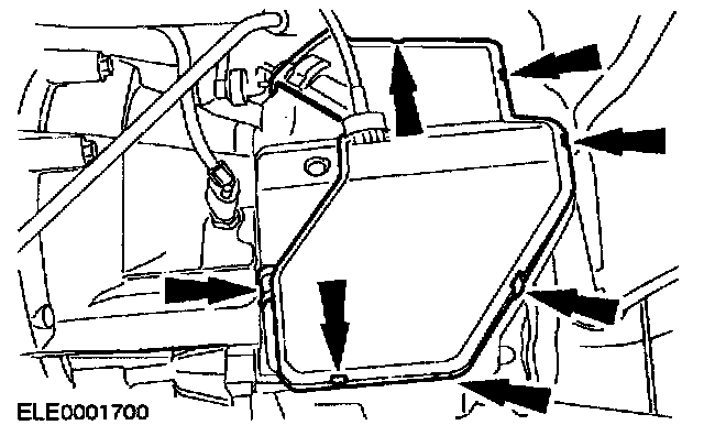 10. Remove the shift and selector cable bushing from the floor pan and pull the cables through to the vehicle interior (heater heat exchanger not shown).