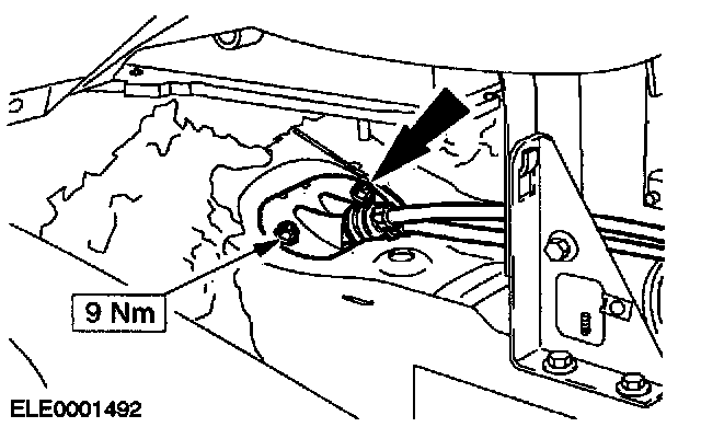 ^ Remove the shift and selector cable end fittings from the shift and selector lever.