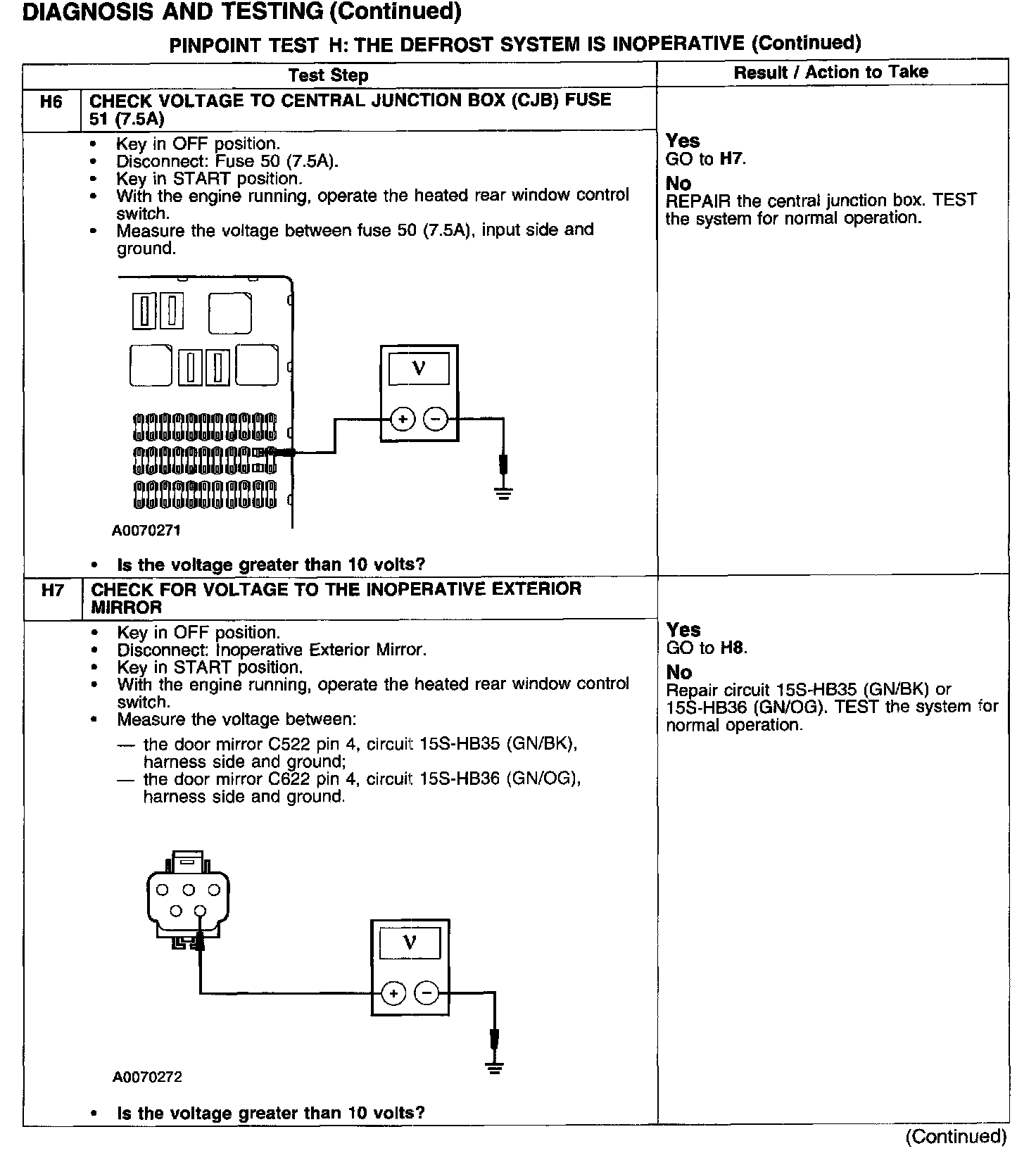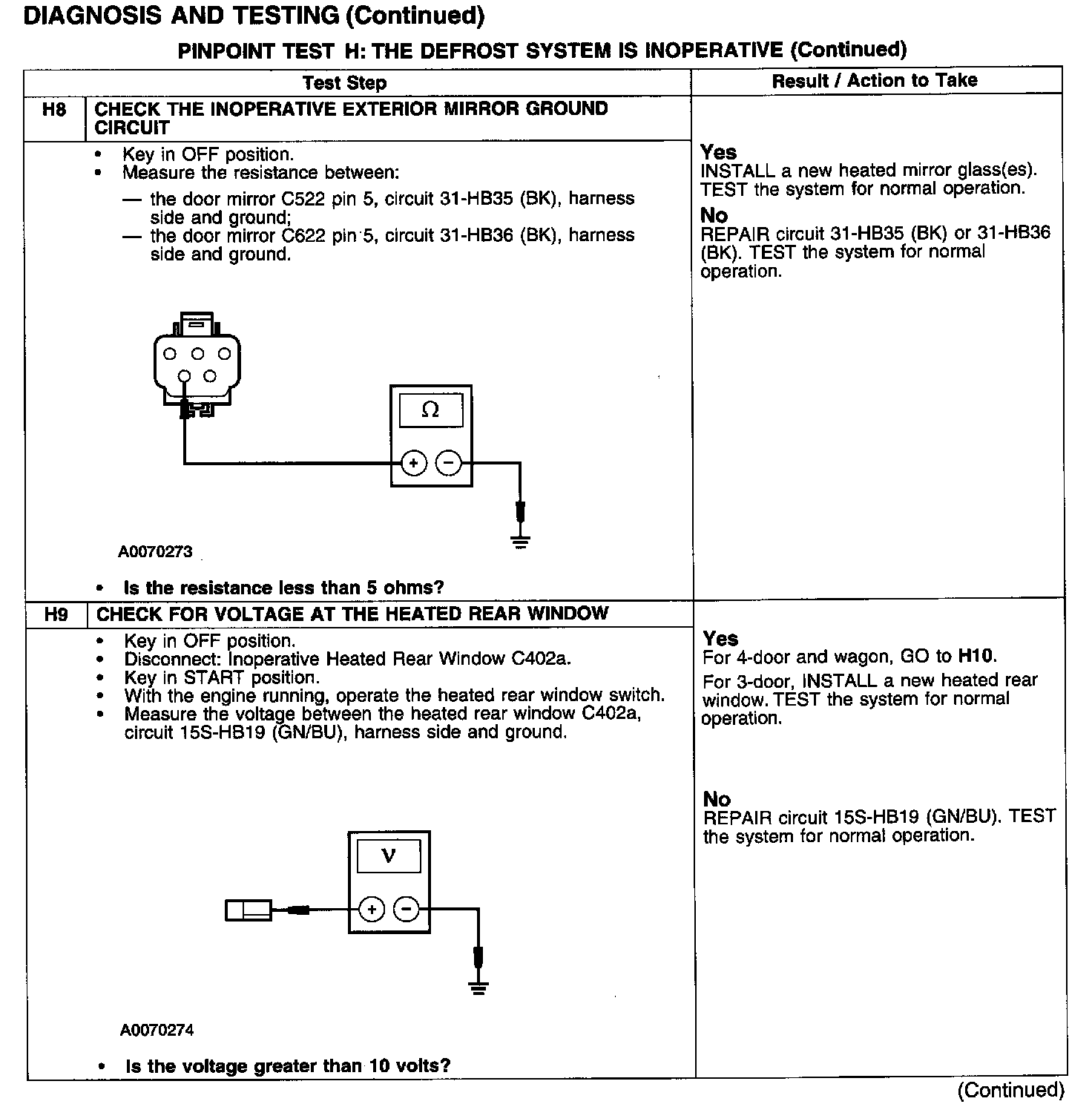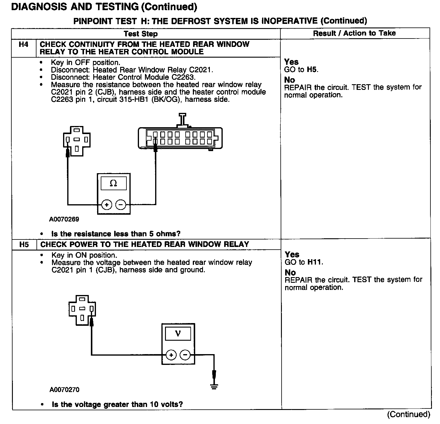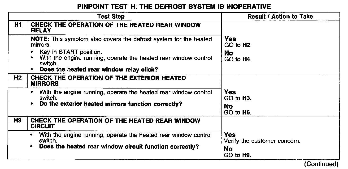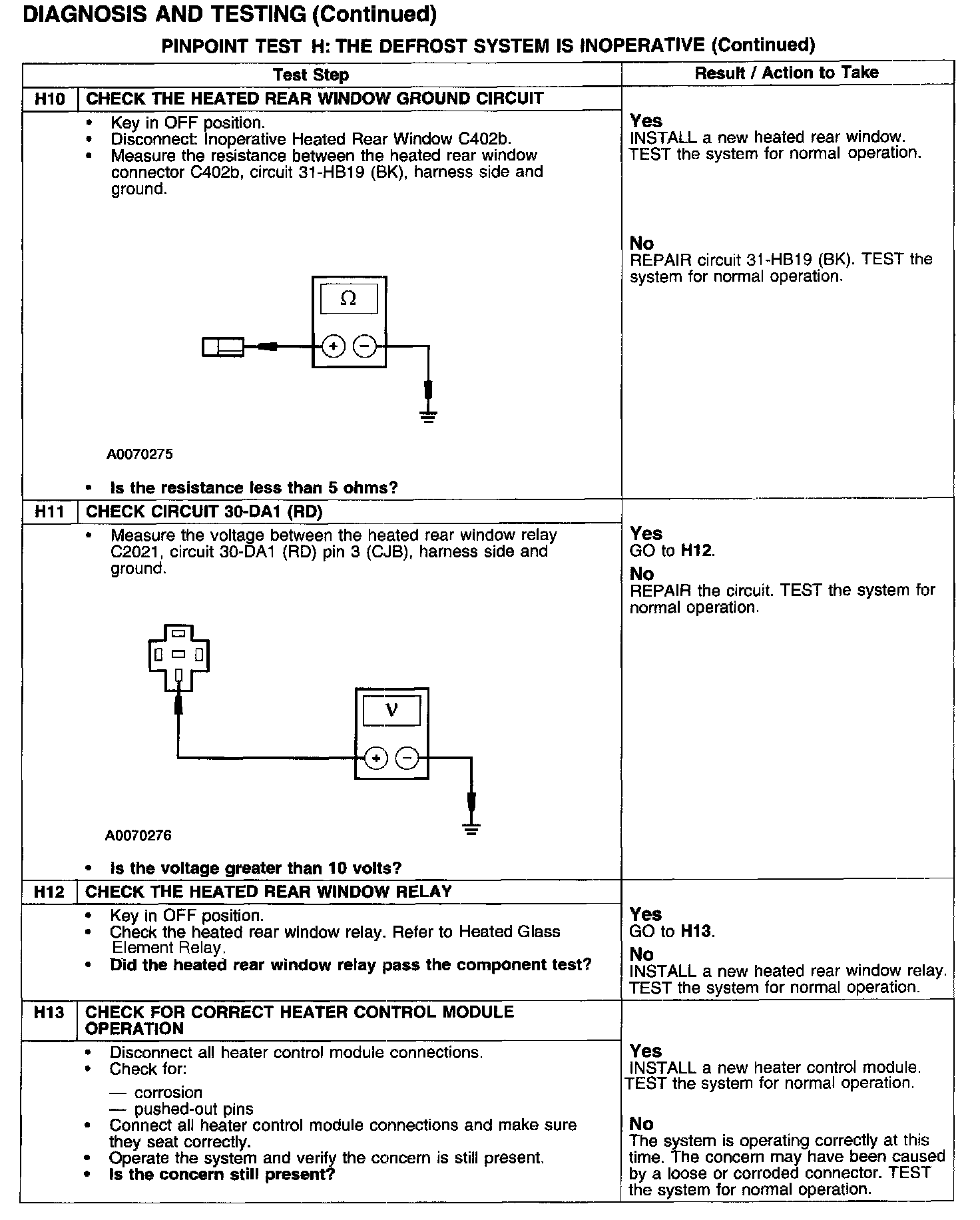 PINPOINT TEST H: THE DEFROST SYSTEM IS INOPERATIVE