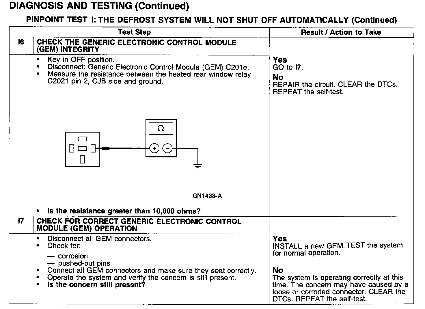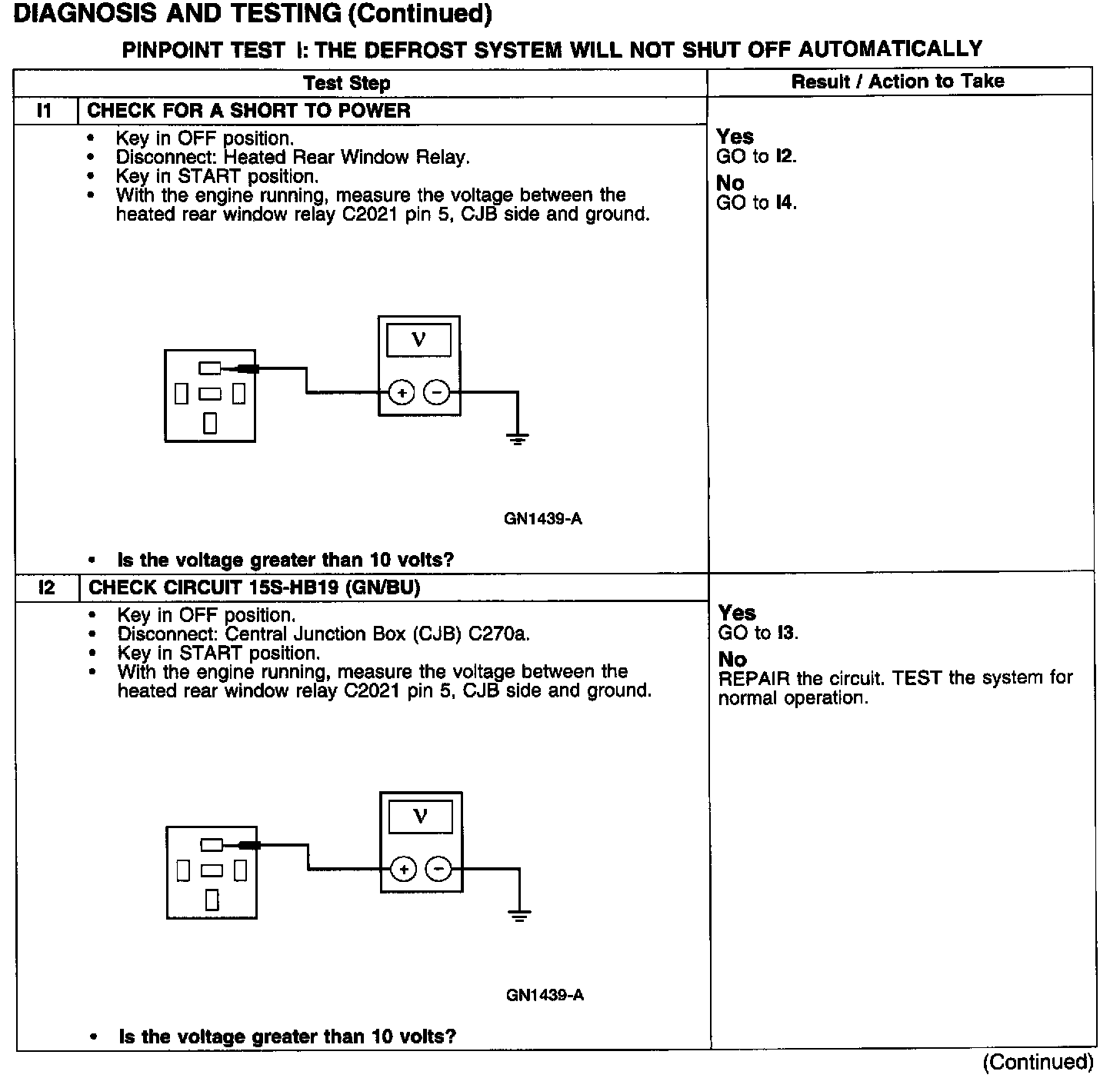 PINPOINT TEST I: THE DEFROST SYSTEM WILL NOT SHUT OFF AUTOMATICALLY