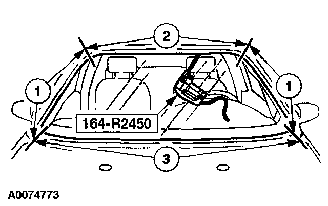 3. Use a non-permanent pencil to make alignment marks on the windshield glass at the setting blocks and the body to aid in the installation alignment of the windshield glass.
