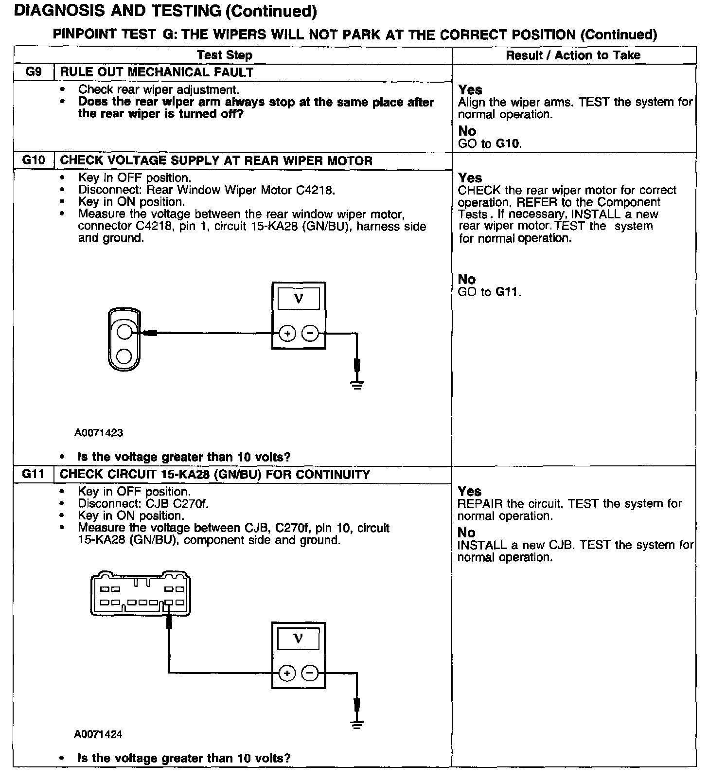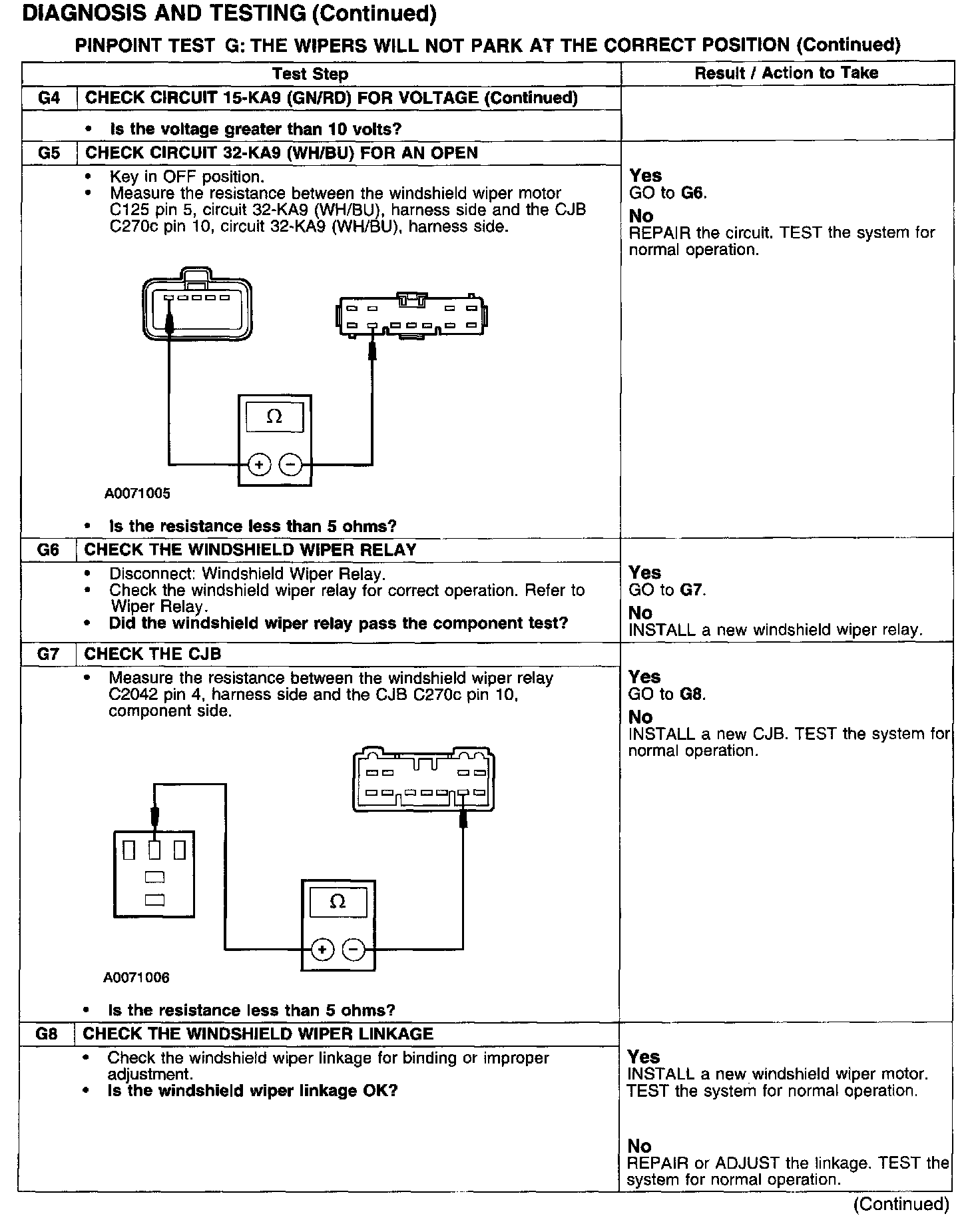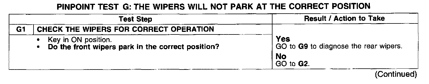 PINPOINT TEST G: THE WIPERS WILL NOT PARK AT THE CORRECT POSITION