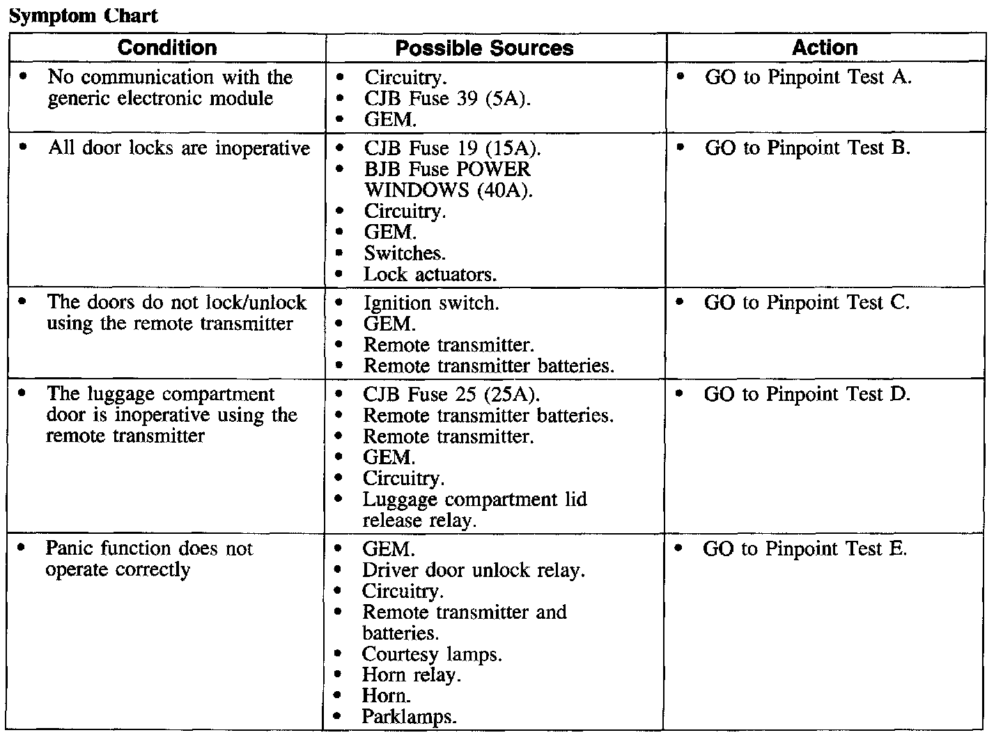 Symptom Chart: