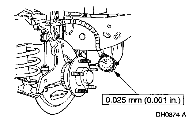 10. Install a new front hub if the total indicated runout exceeds the maximum specification.
