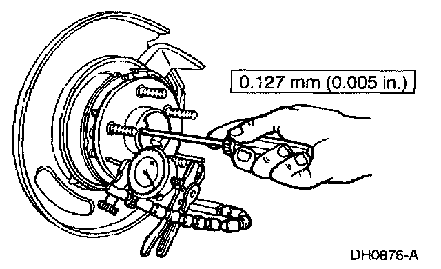 4. Locate an opening on the inboard side of the dust shield that will allow the dial indicator tip to be positioned at least 5 mm (0.2 inch) from the outer edge of the brake disc.