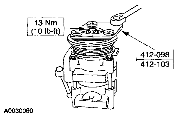CAUTION: Do not use air tools. The A/C clutch field coil can be easily damaged.