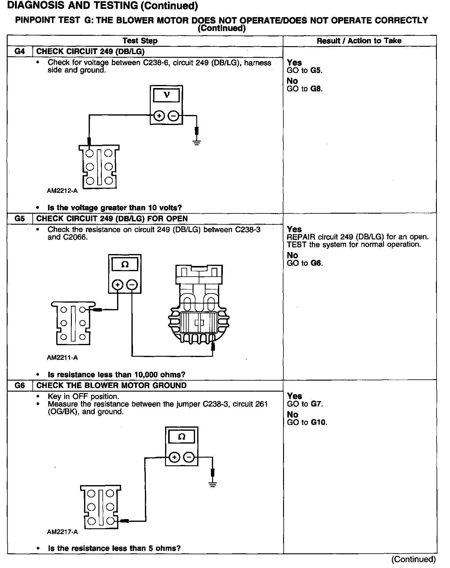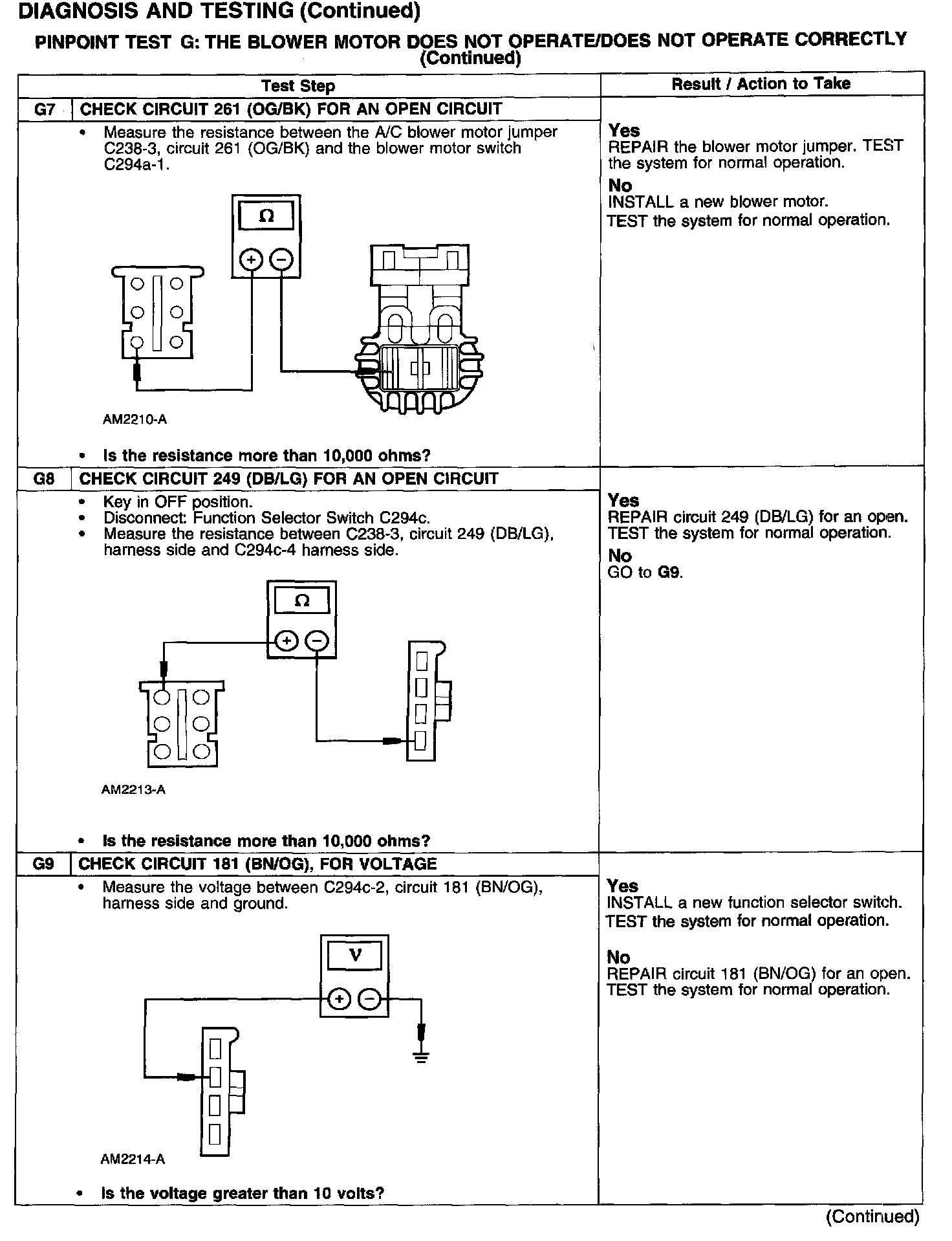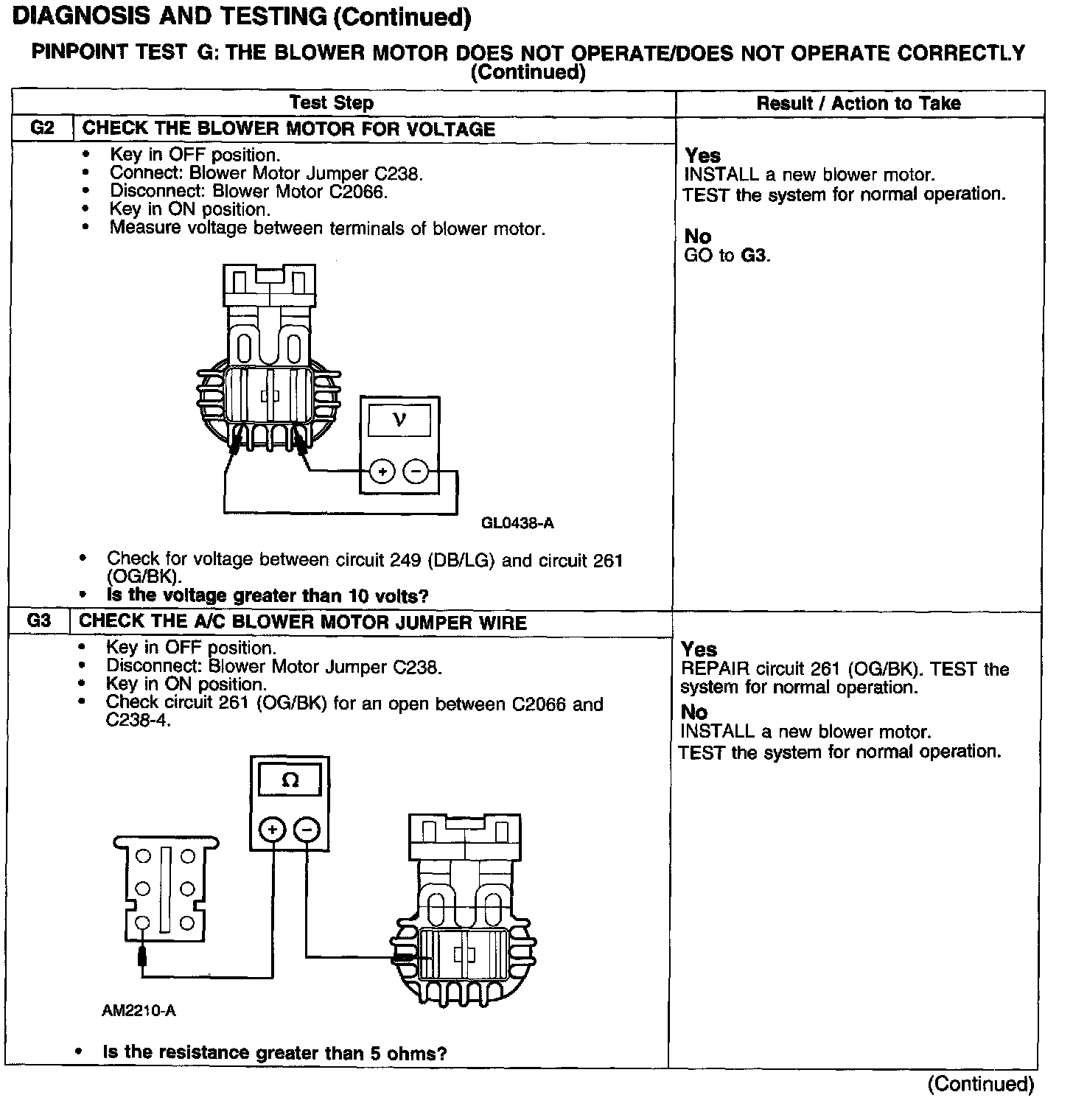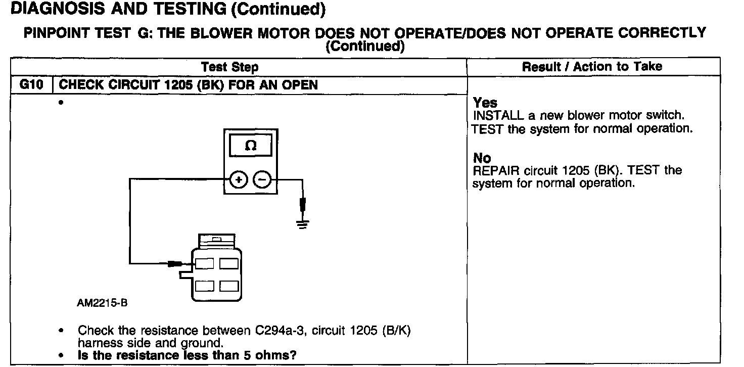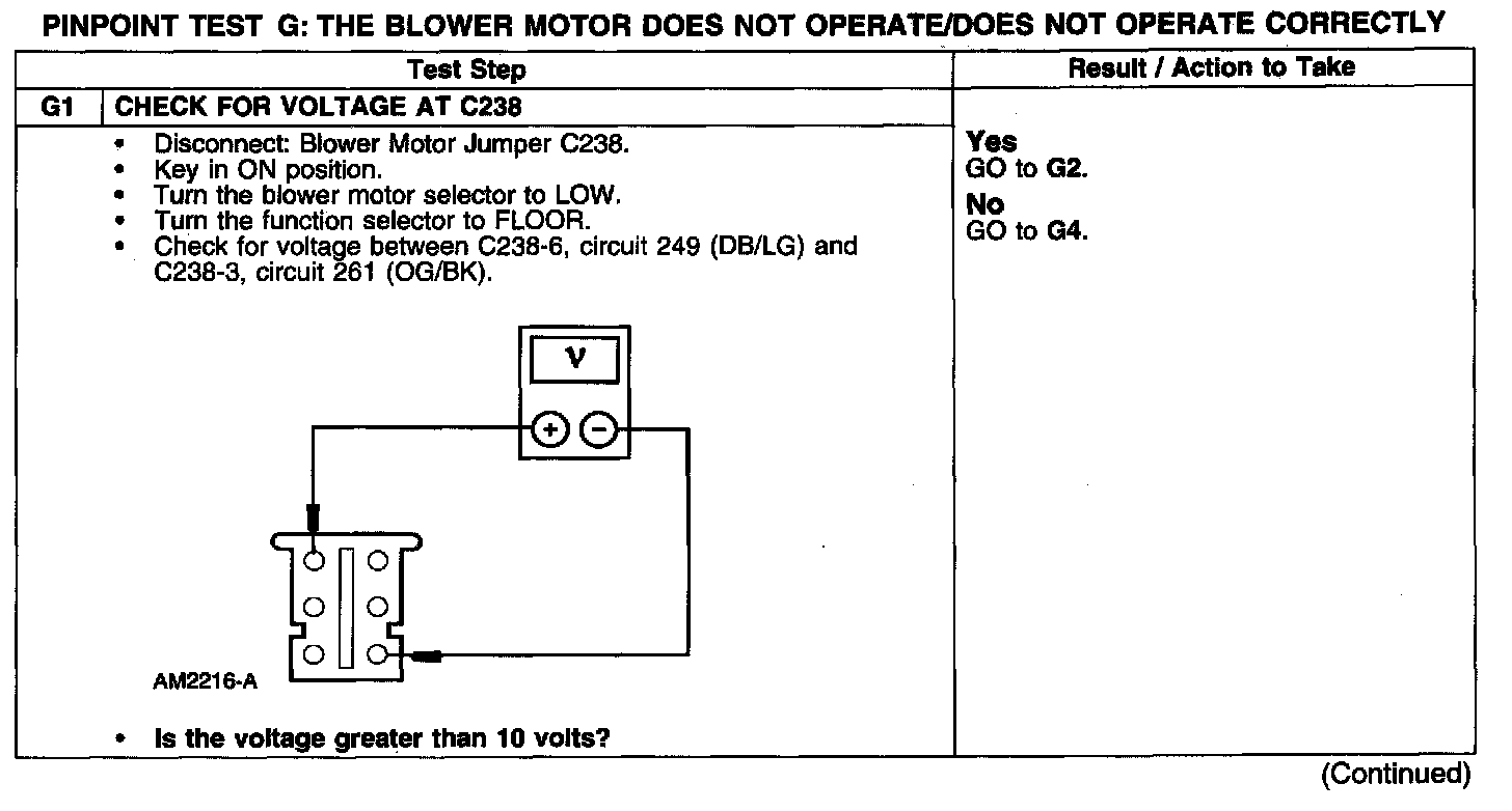 Test G: Blower Motor Not Operate/Does Not Operate Correctly