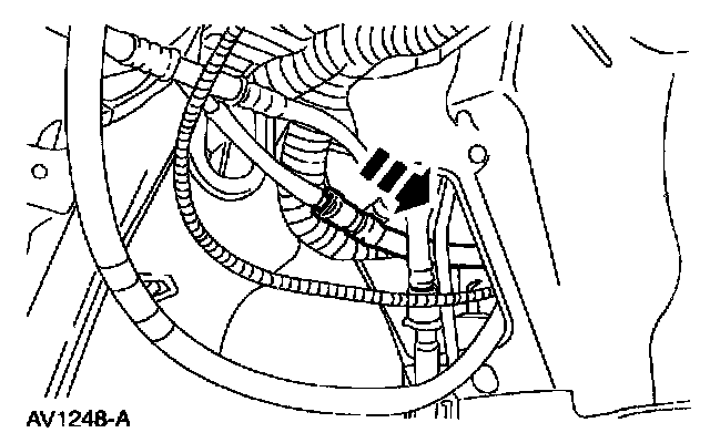5. Remove the evaporative emission test port by disconnecting at the EVAP canister purge outlet tube junction.