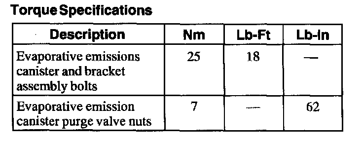 Evaporative Emissions System: Specifications
