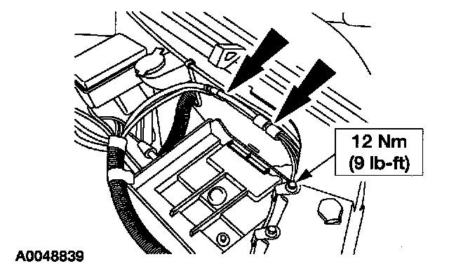 CAUTION: Failure to tighten the negative cable ground nut may cause ground circuit failure or arcing.