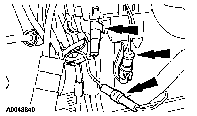 9. If equipped, remove the block heater plug from the block heater and the harness locators from the oil pan clips.