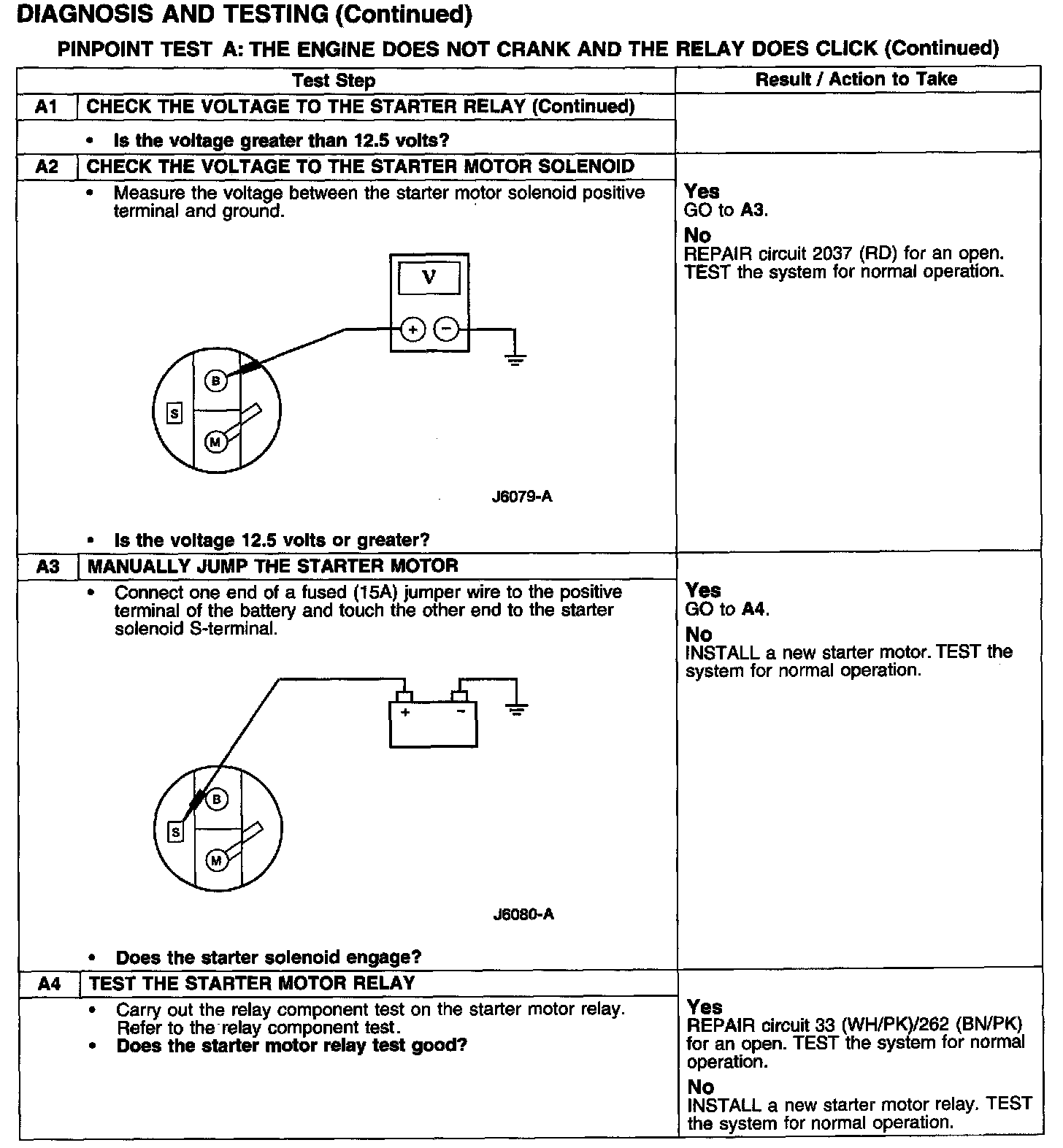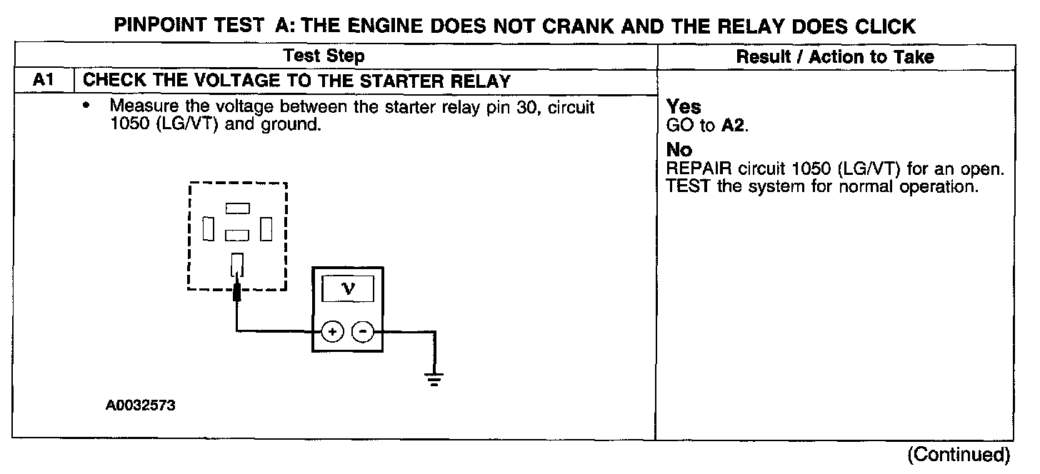 PINPOINT TEST A: THE ENGINE DOES NOT CRANK AND THE RELAY DOES CLICK