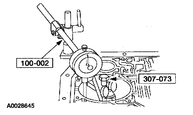 ^ Position the indicator stem on the flat portion of the reverse servo piston and zero the dial indicator.