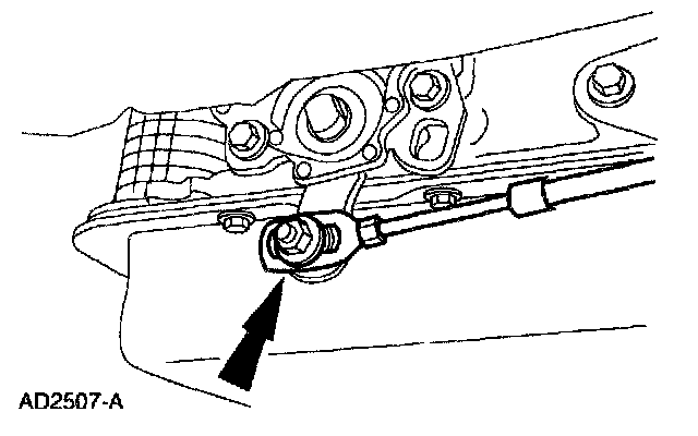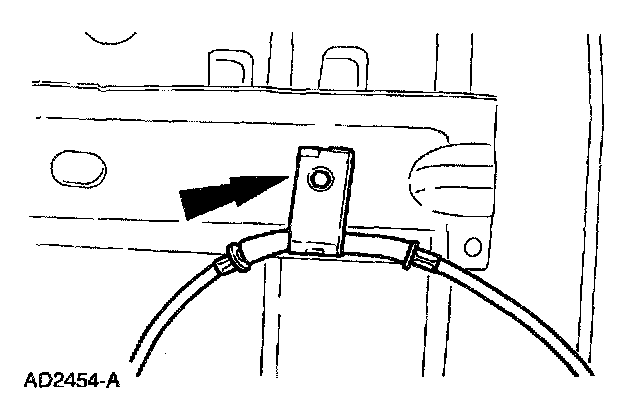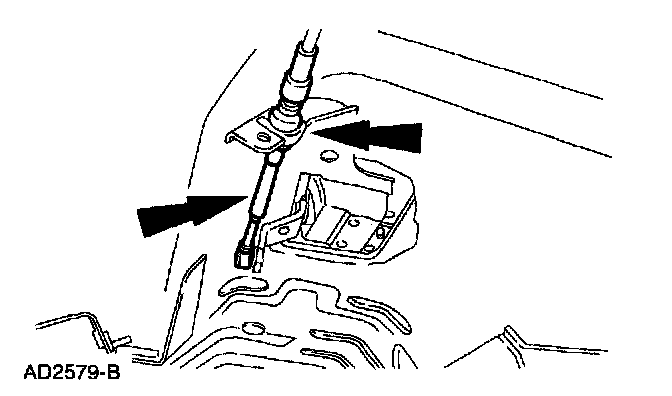 6. Remove the transmission shift cable bracket (7B229) from the transmission.