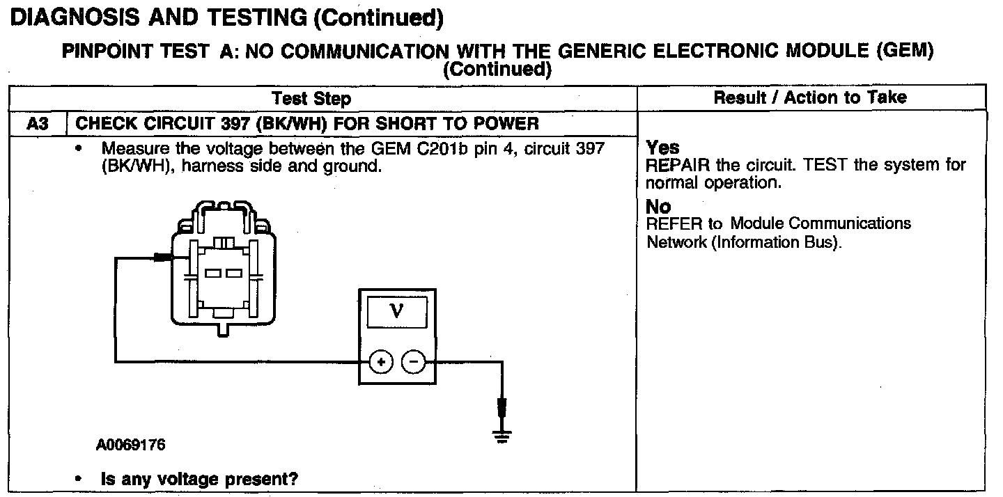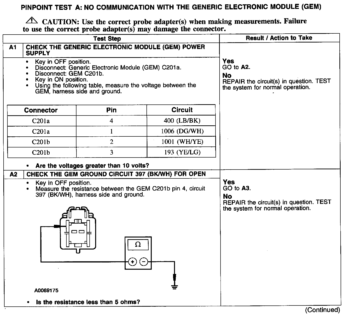 PINPOINT TEST A: NO COMMUNICATION WITH THE GENERIC ELECTRONIC MODULE (GEM)