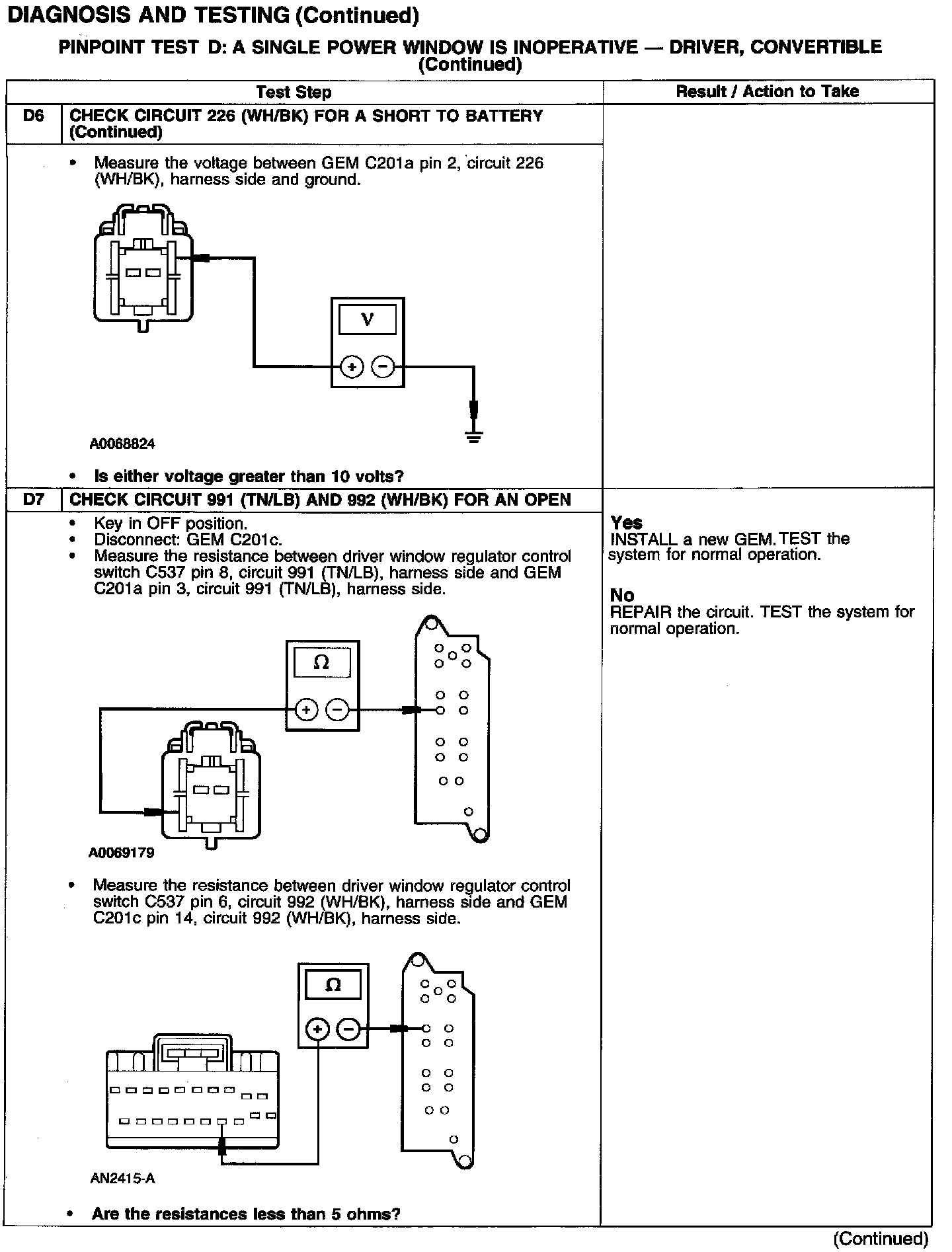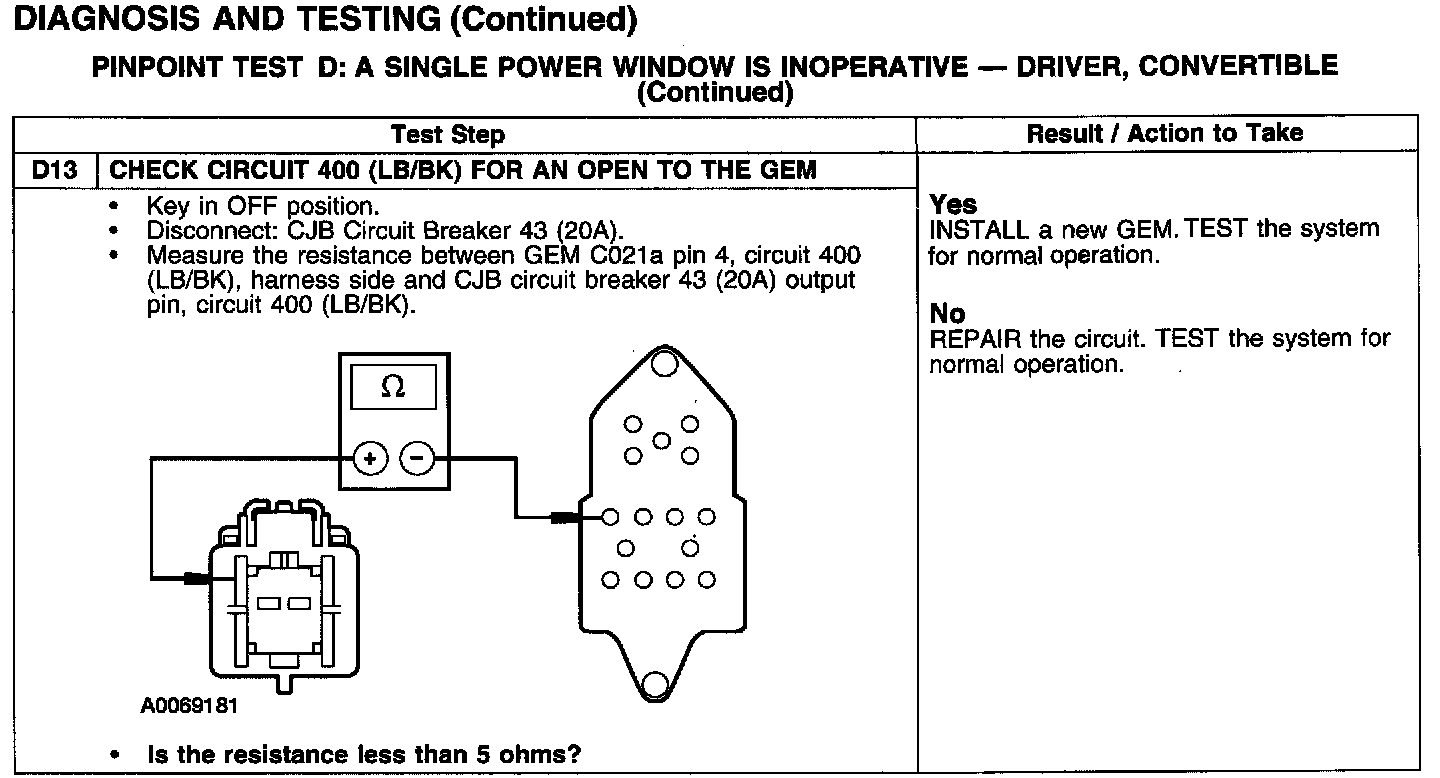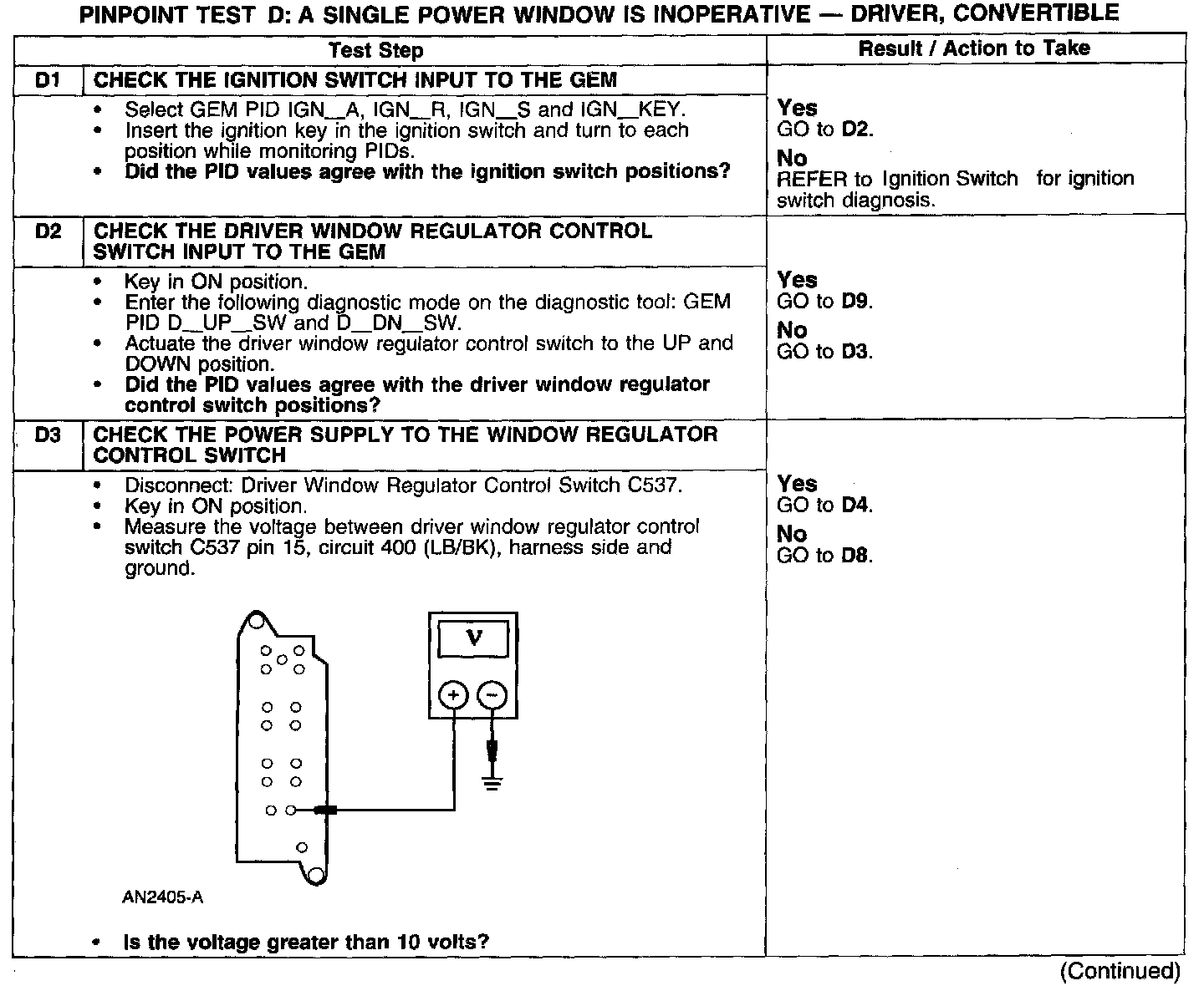 PINPOINT TEST D: A SINGLE POWER WINDOW IS INOPERATIVE - DRIVER, CONVERTIBLE