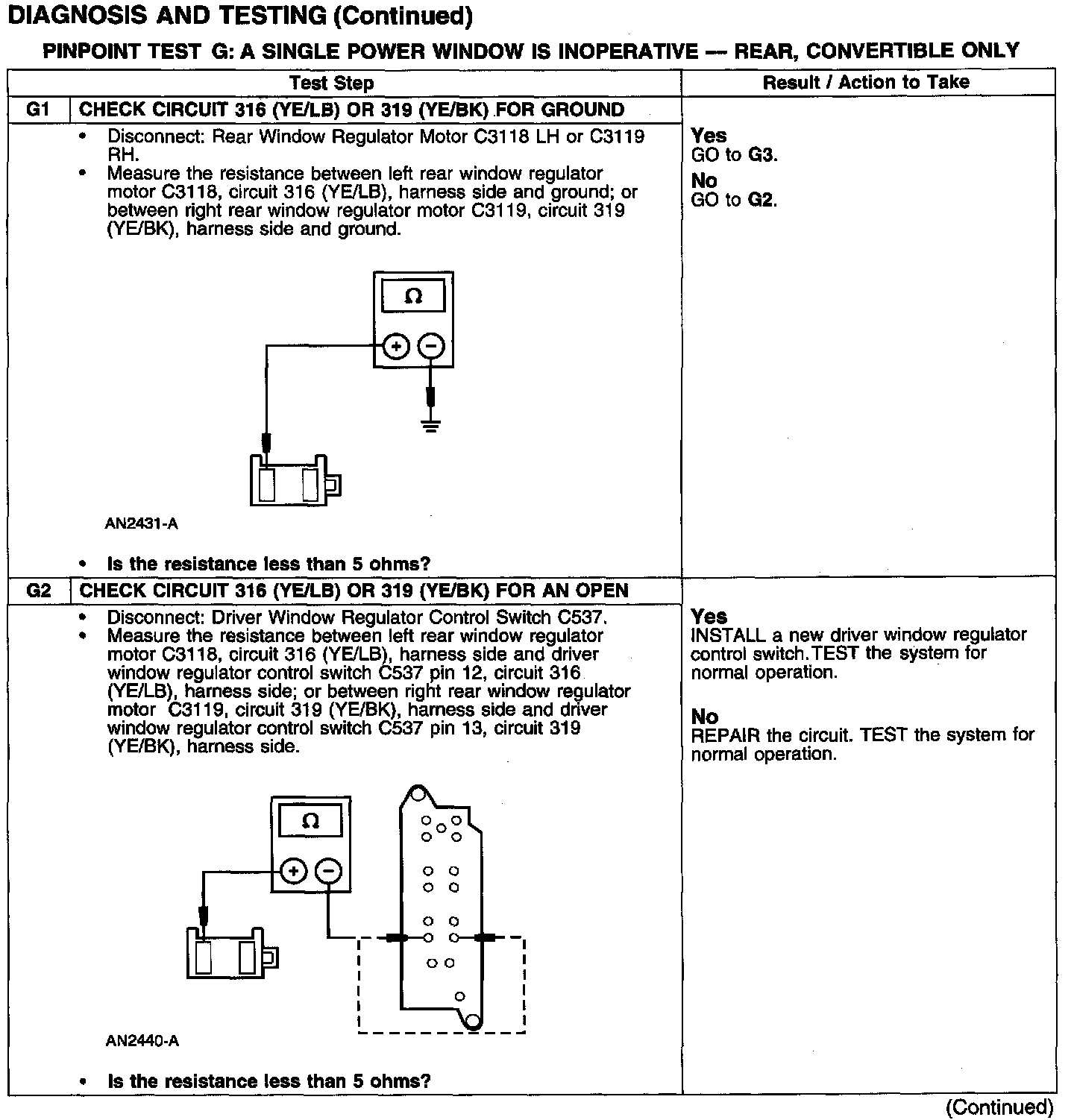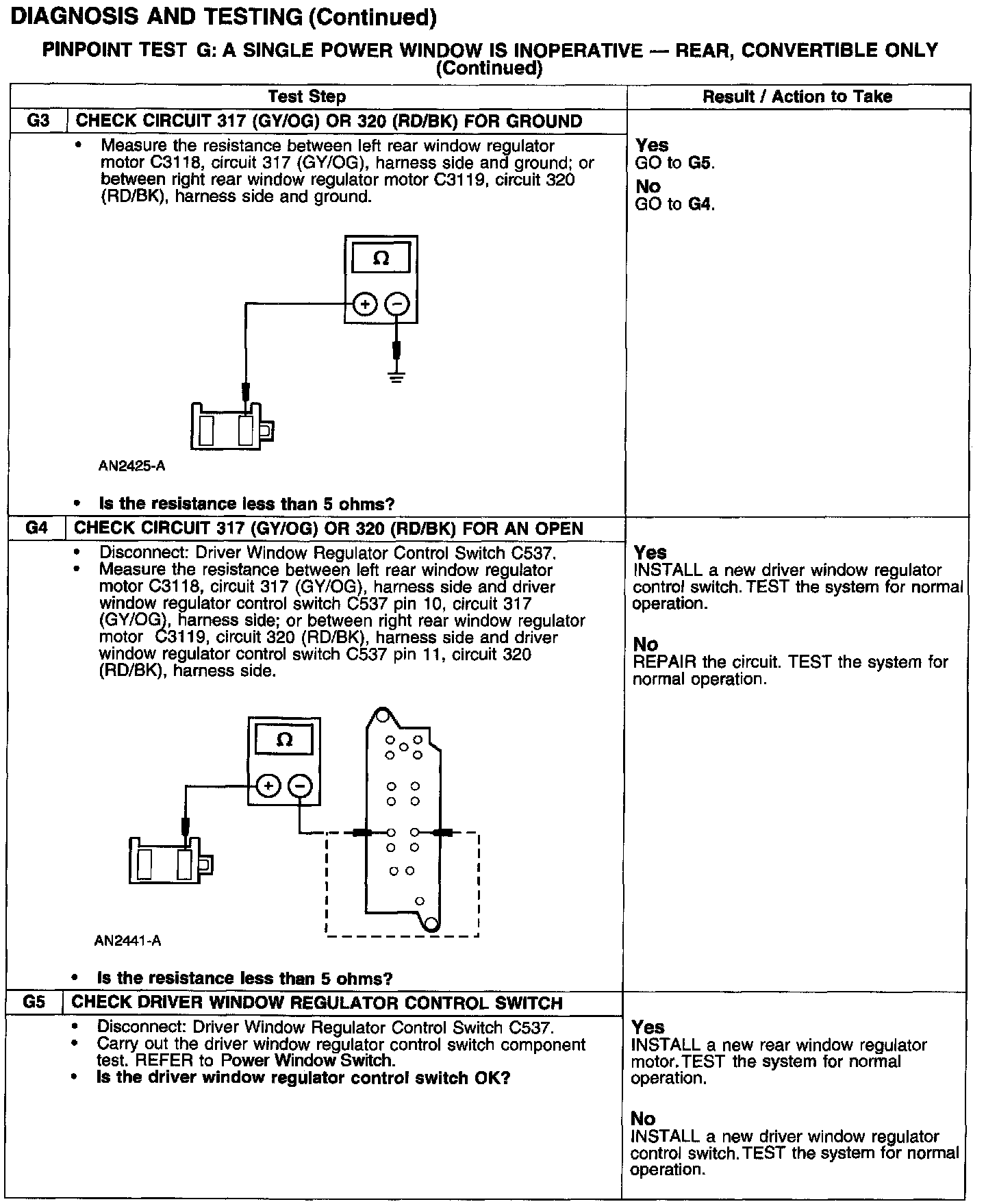 PINPOINT TEST G: A SINGLE POWER WINDOW IS INOPERATIVE - REAR, CONVERTIBLE ONLY