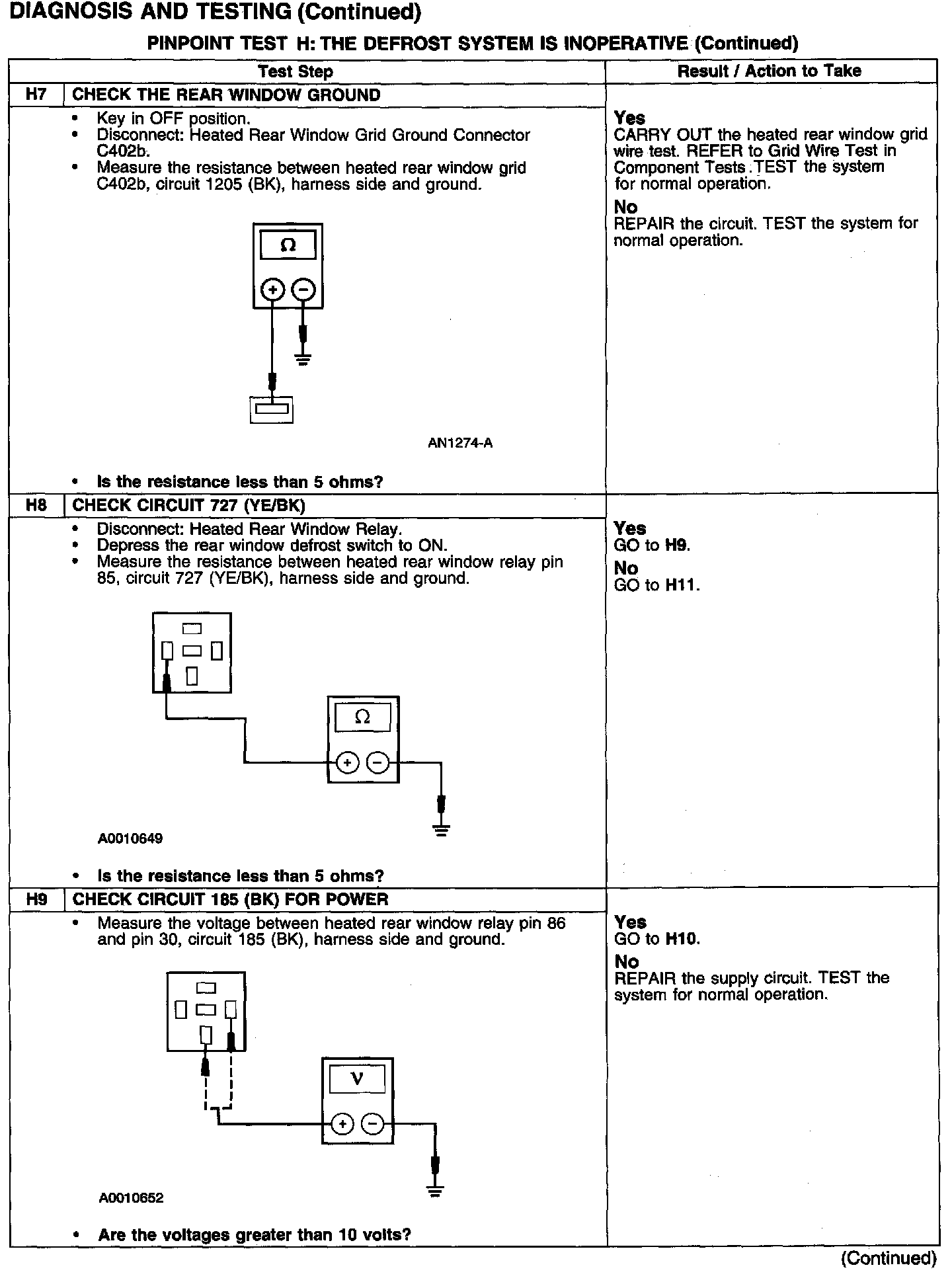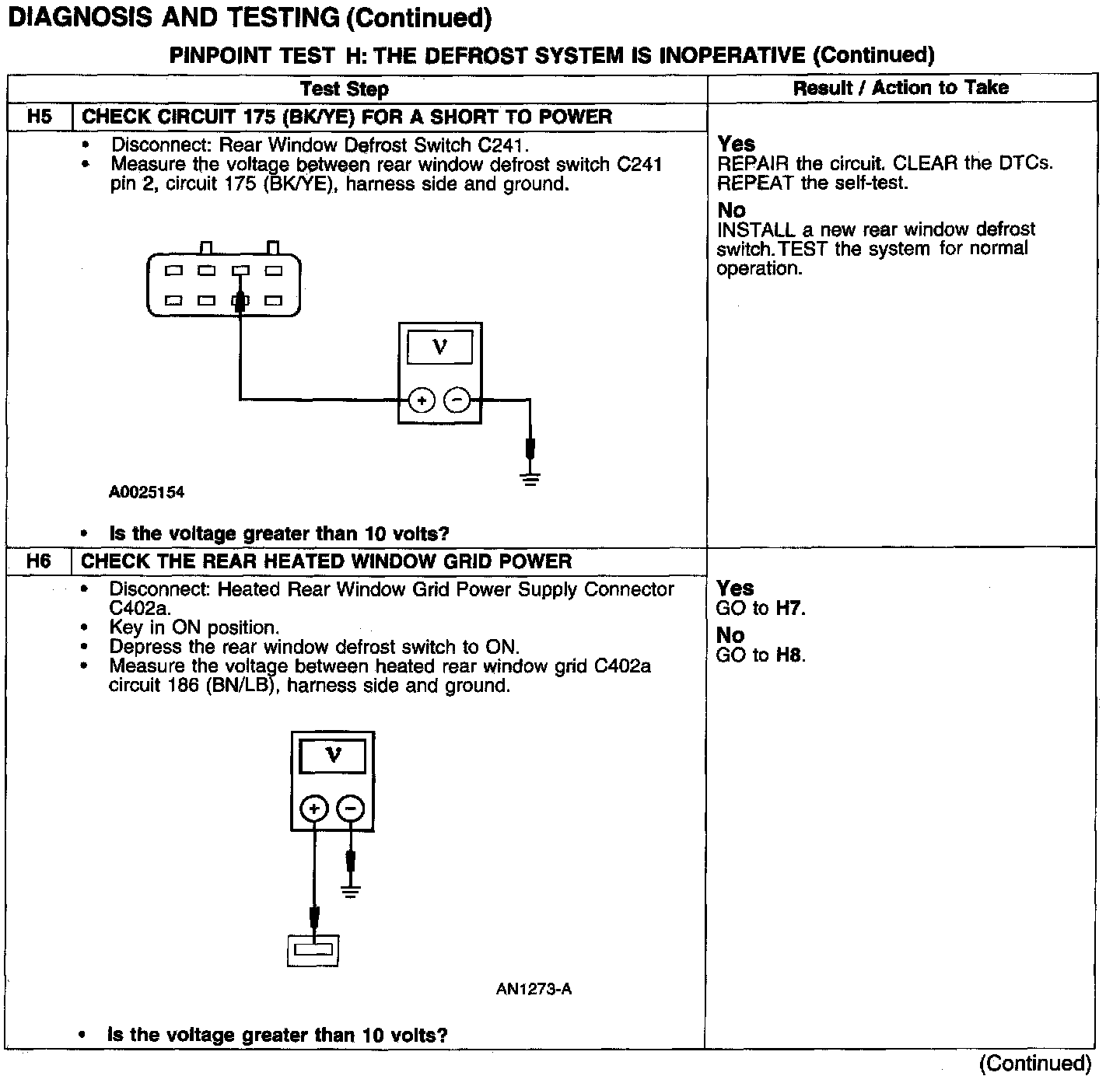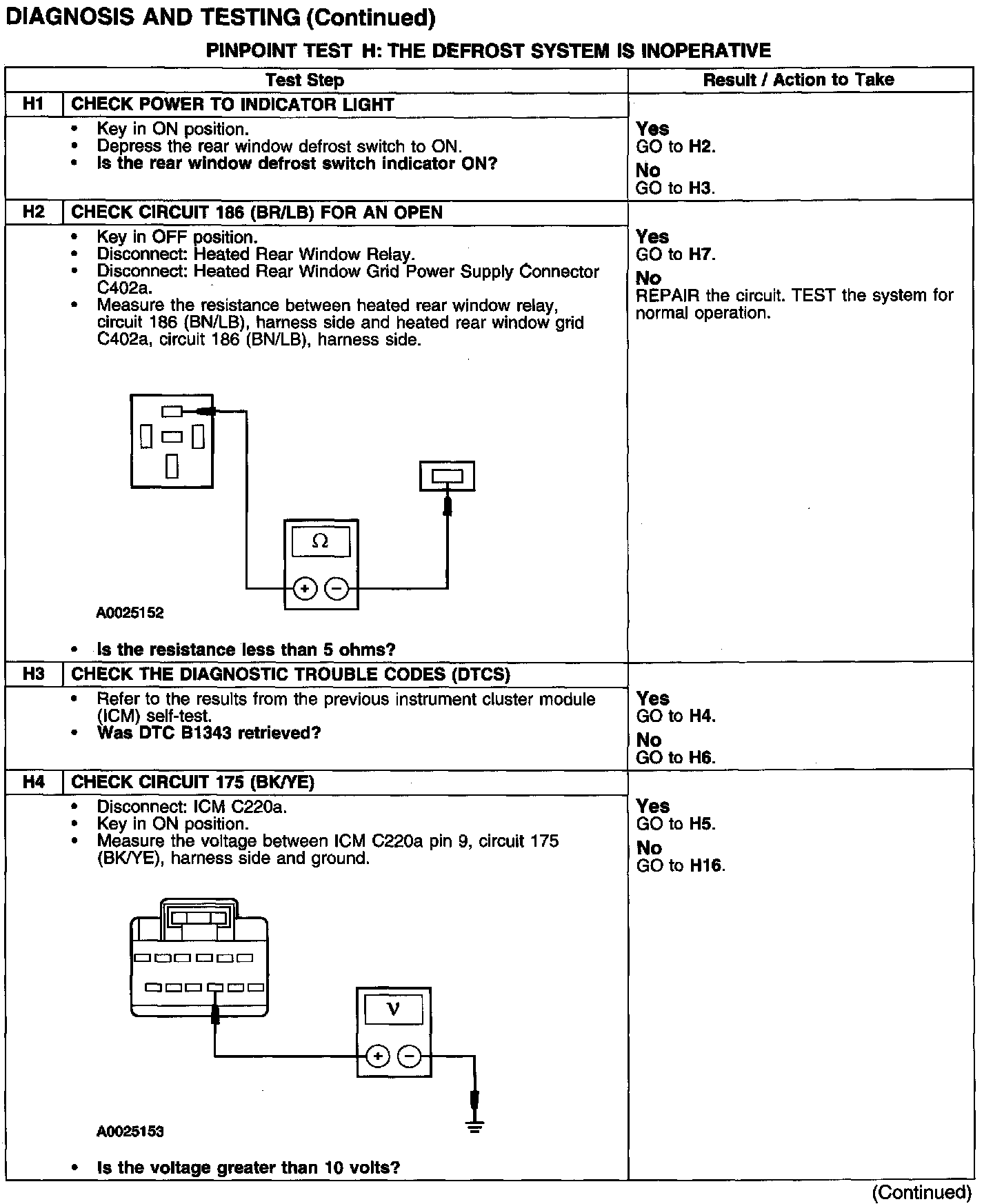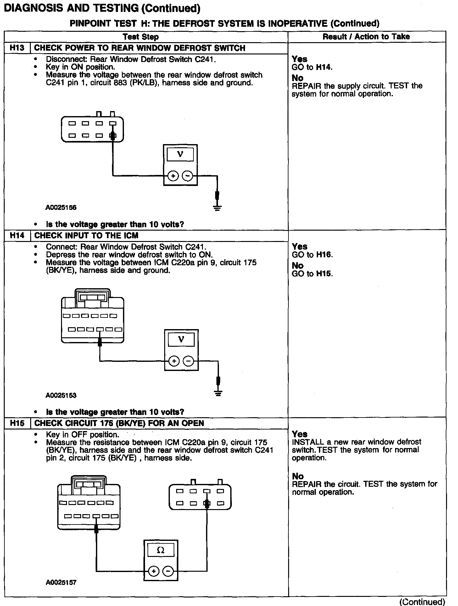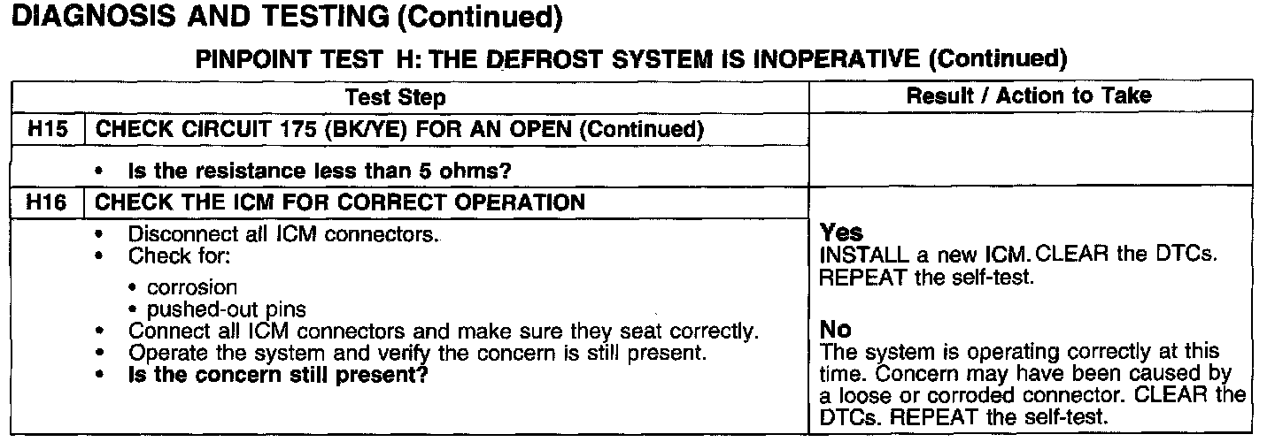 PINPOINT TEST H: THE DEFROST SYSTEM IS INOPERATIVE