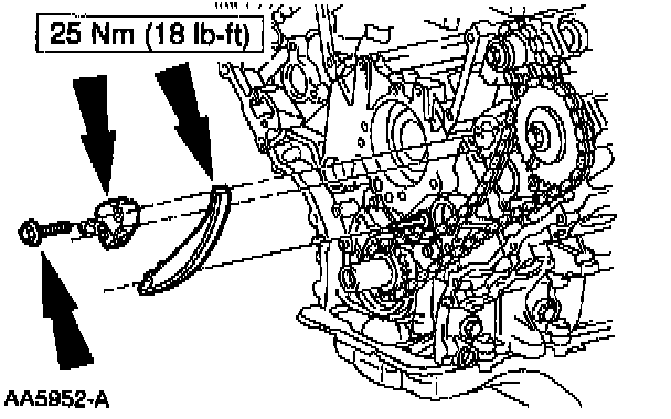 CAUTION: Since the engine is not free-wheeling, if the crankshaft or the camshafts are moved in any manner during removal and installation, the crankshaft and the camshafts must he resynchronized.