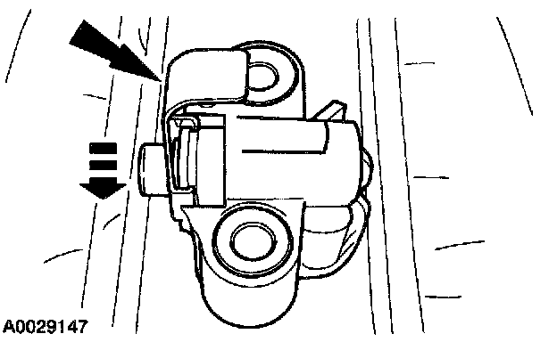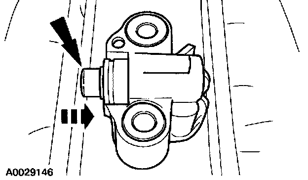 2. Install a retaining clip on the tensioner to hold the plunger in during installation.