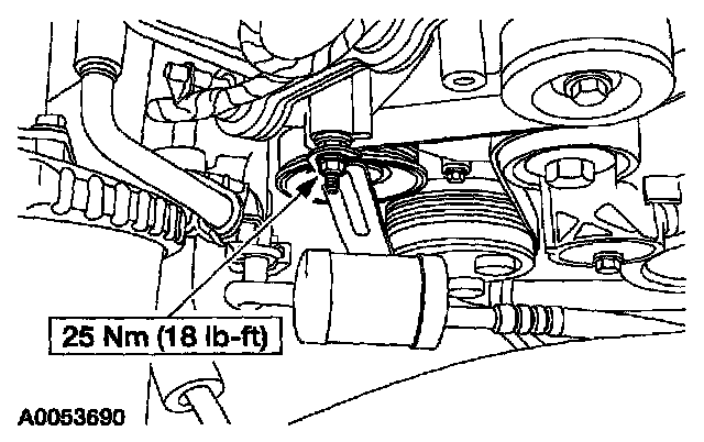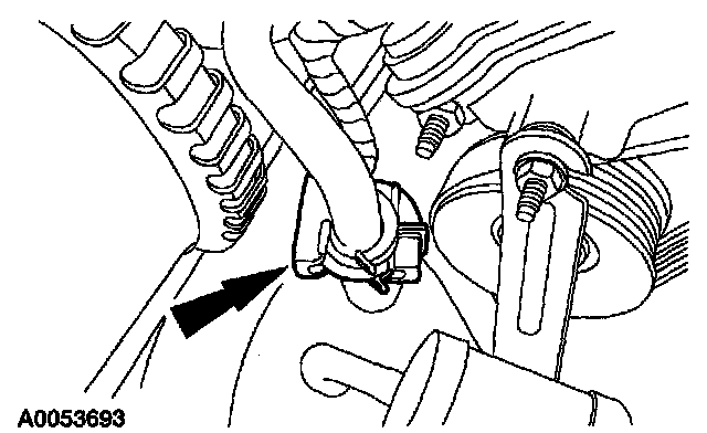 NOTE: Installation of a new suction accumulator is not required when repairing the air conditioning system except when there is physical evidence of contamination from a failed A/C compressor or damage to the suction accumulator.REMOVAL