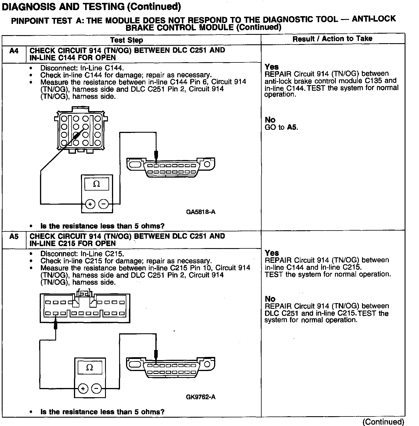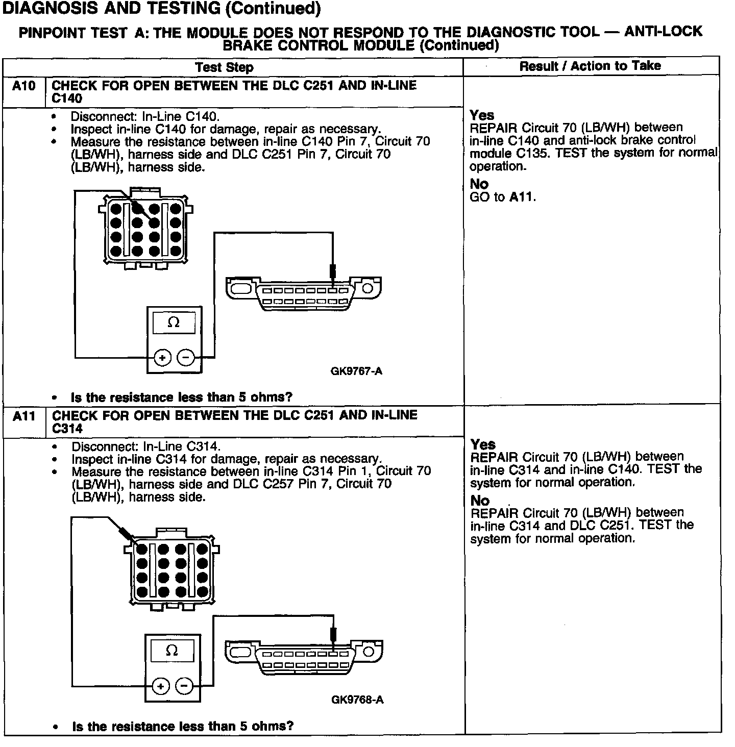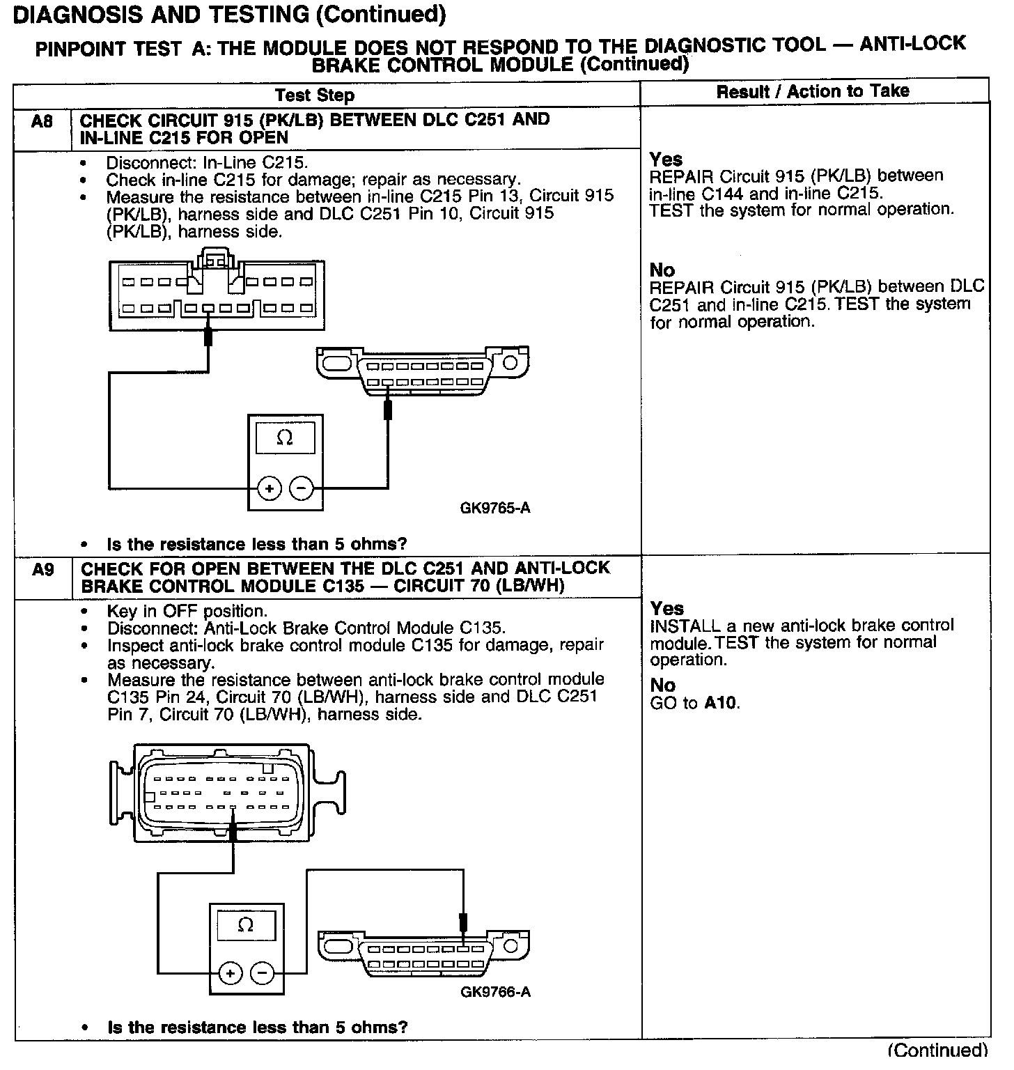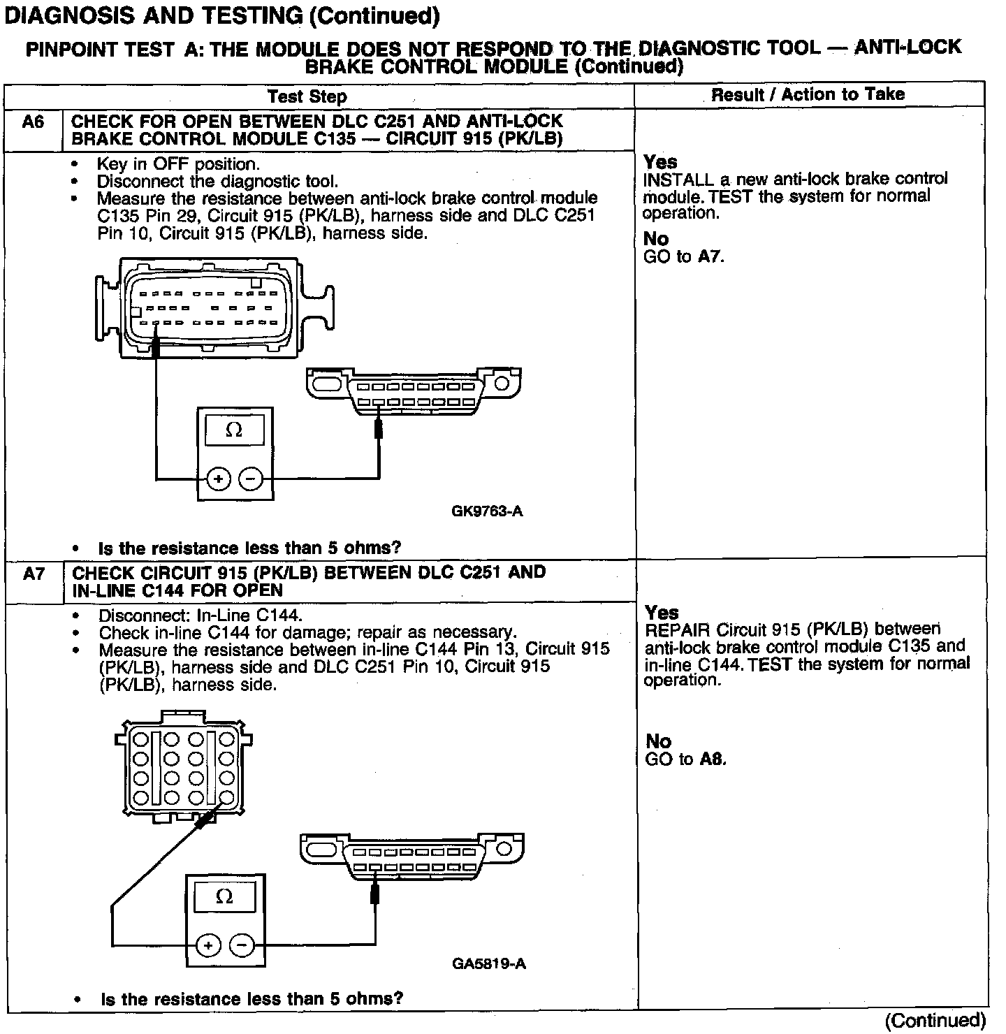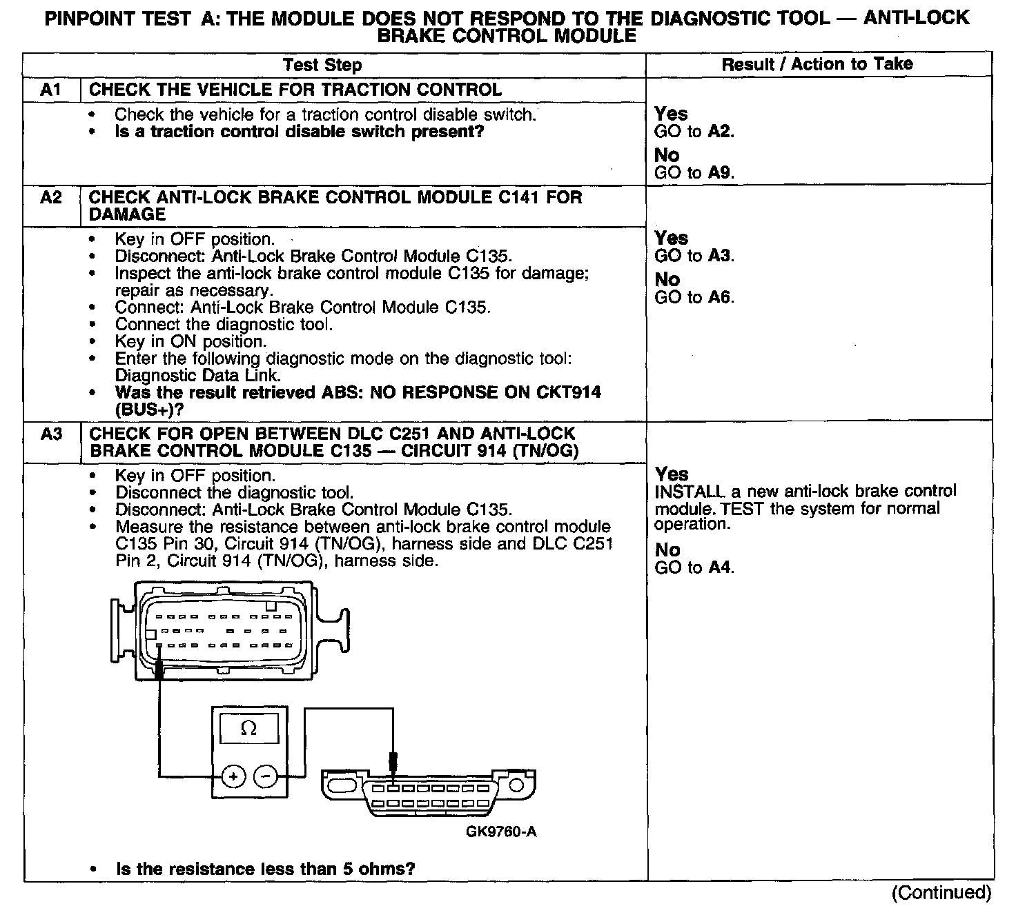 PINPOINT TEST A: THE MODULE DOES NOT RESPOND TO THE DIAGNOSTIC TOOL - ANTI-LOCK BRAKE CONTROL MODULE