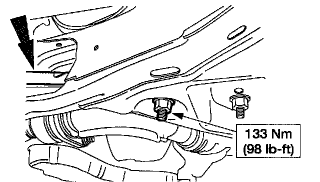 CAUTION: Suspension fasteners are critical parts because they affect the performance of vital components and systems and their failure can result in major service expense. A new part with the same part number must be installed if installation becomes necessary. Do not use a new part of lesser quality or substitute design. Torque values must be used as specified during reassembly to make sure of correct retention of these parts.