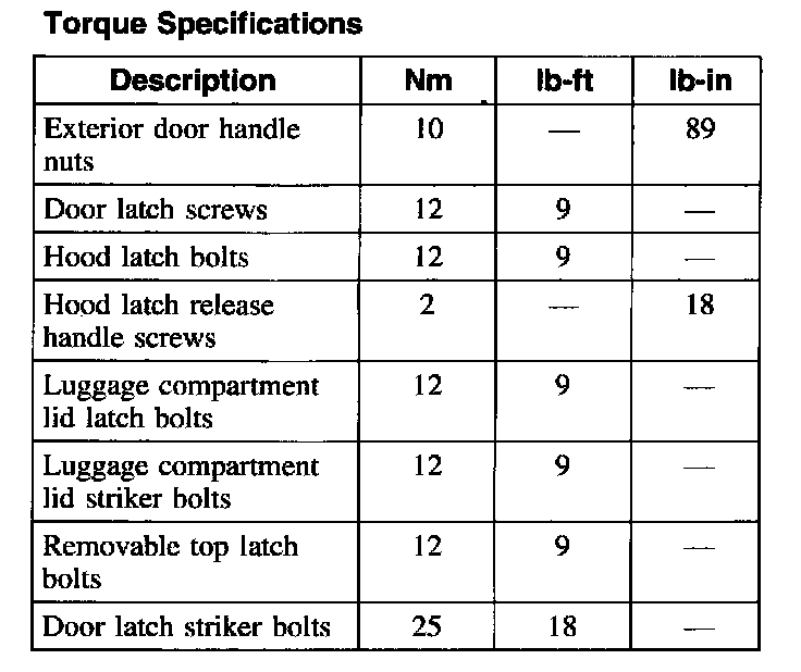 Torque Specifications:
