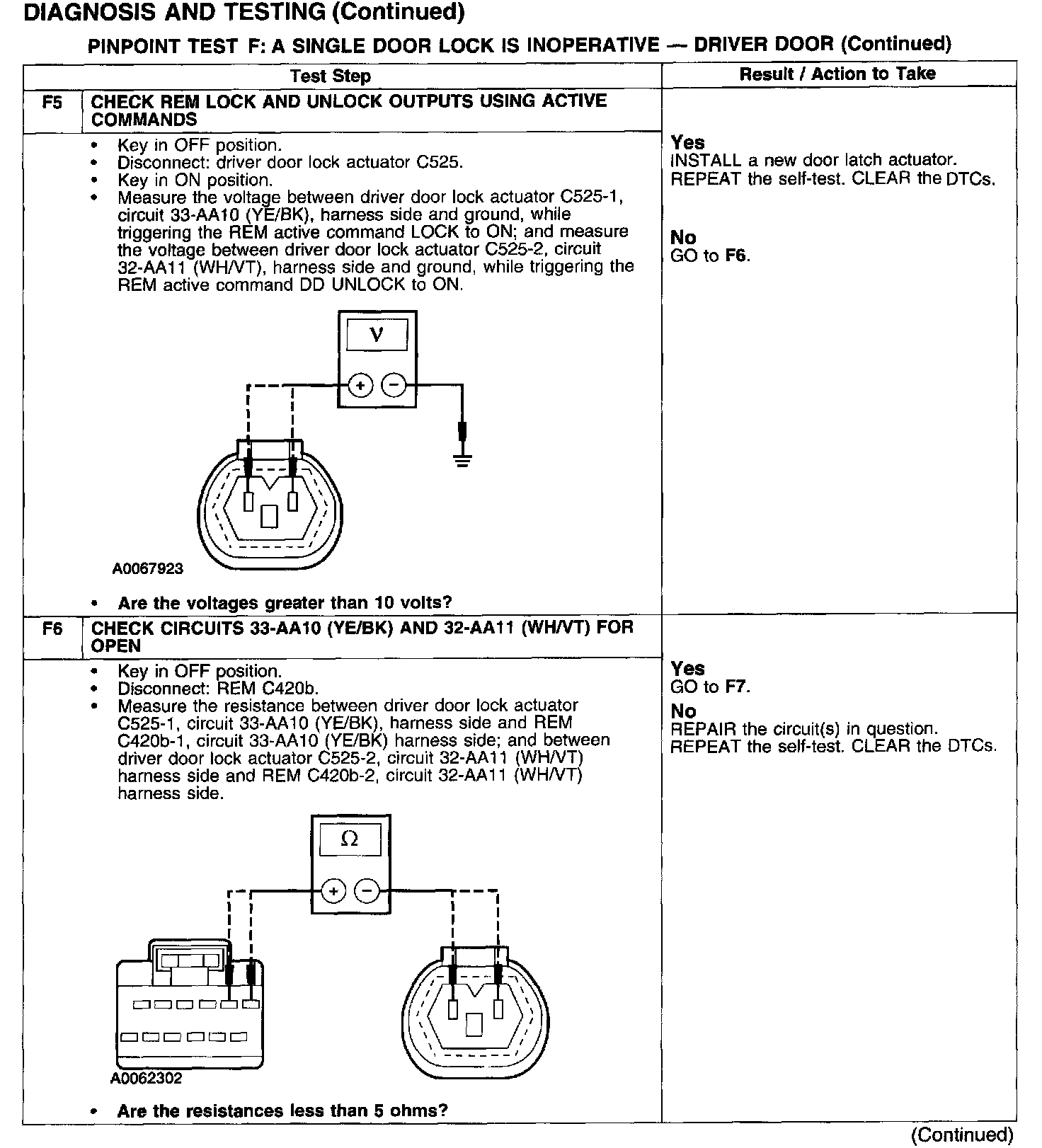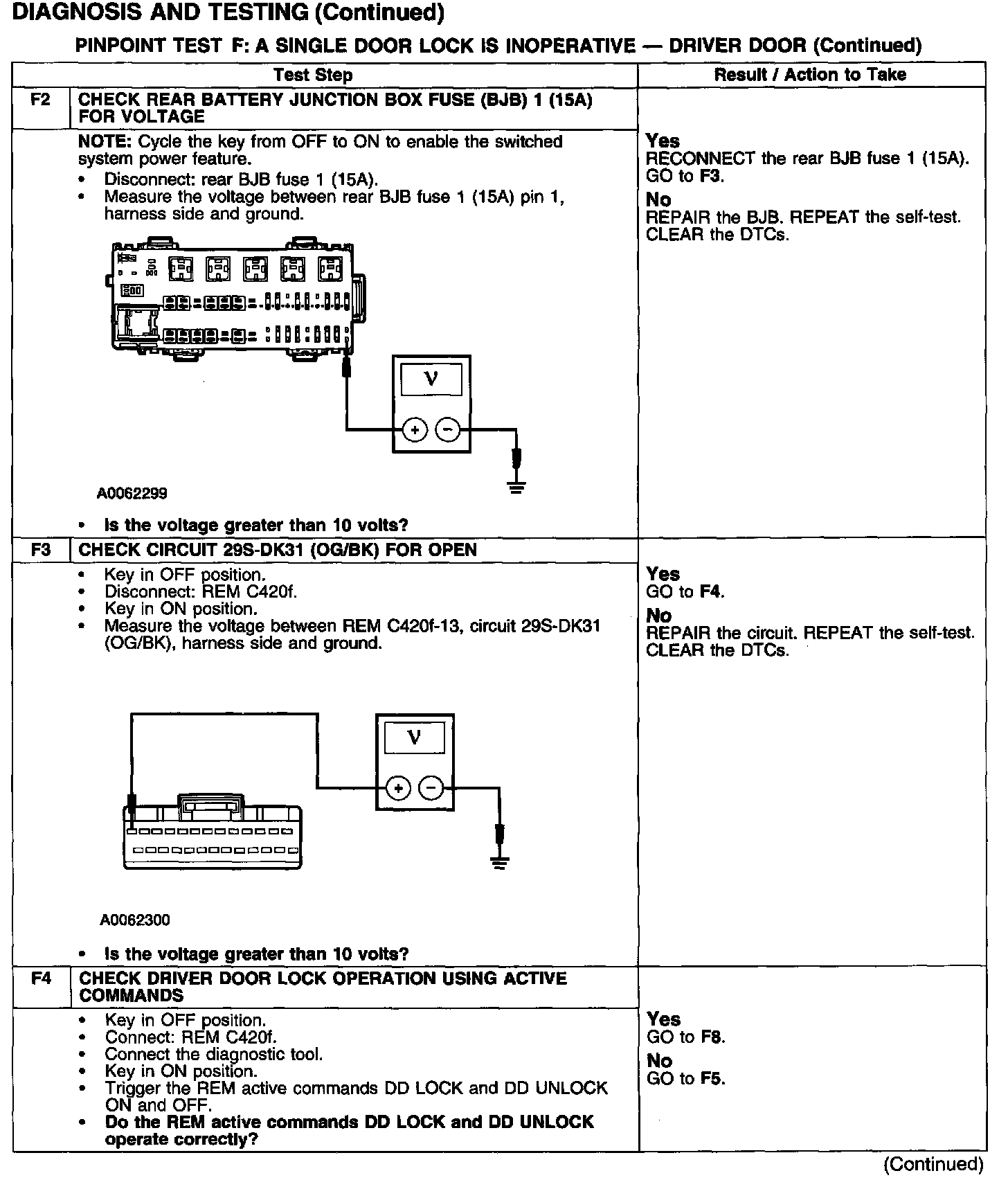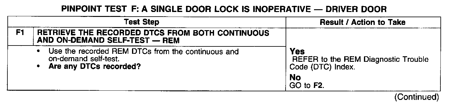 PINPOINT TEST F: A SINGLE DOOR LOCK IS INOPERATIVE - DRIVER DOORTest F1: