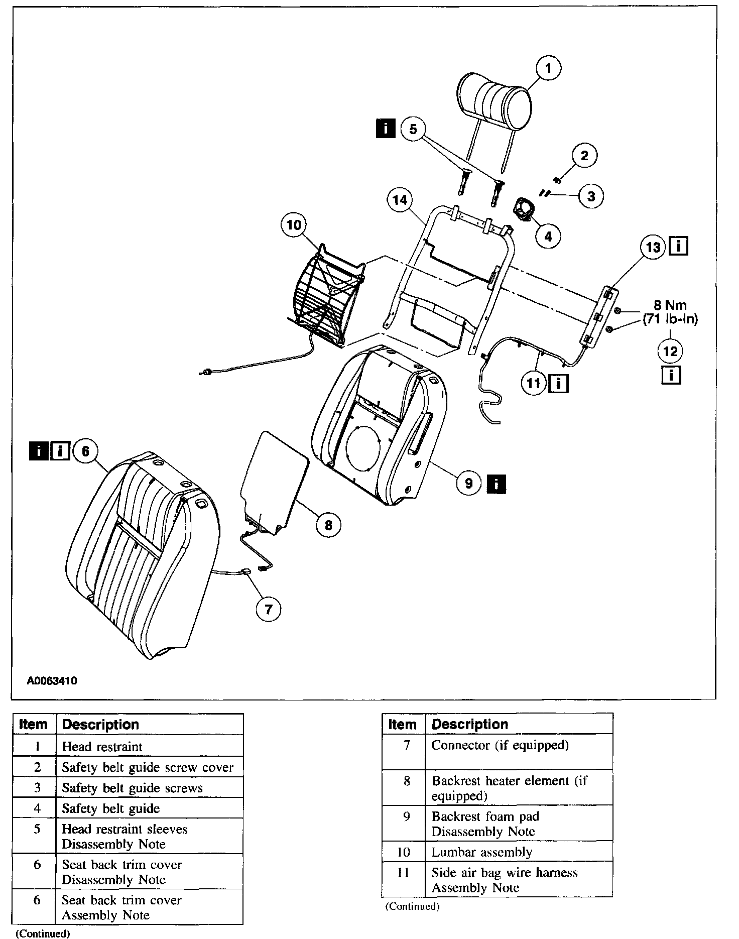 NOTE: If a side air bag deployment took place the seat back pad, trim cover, and side air bag module must be replaced. The seat back frame should be replaced if necessary.