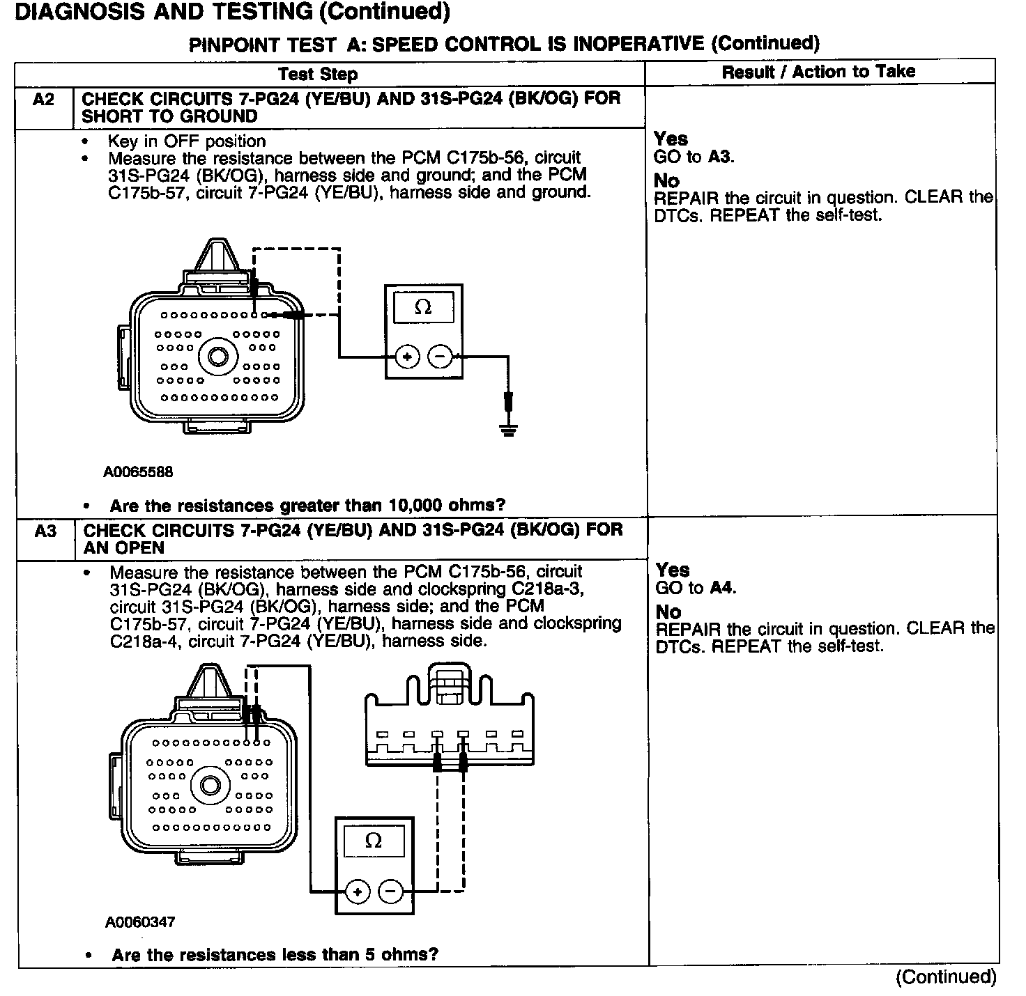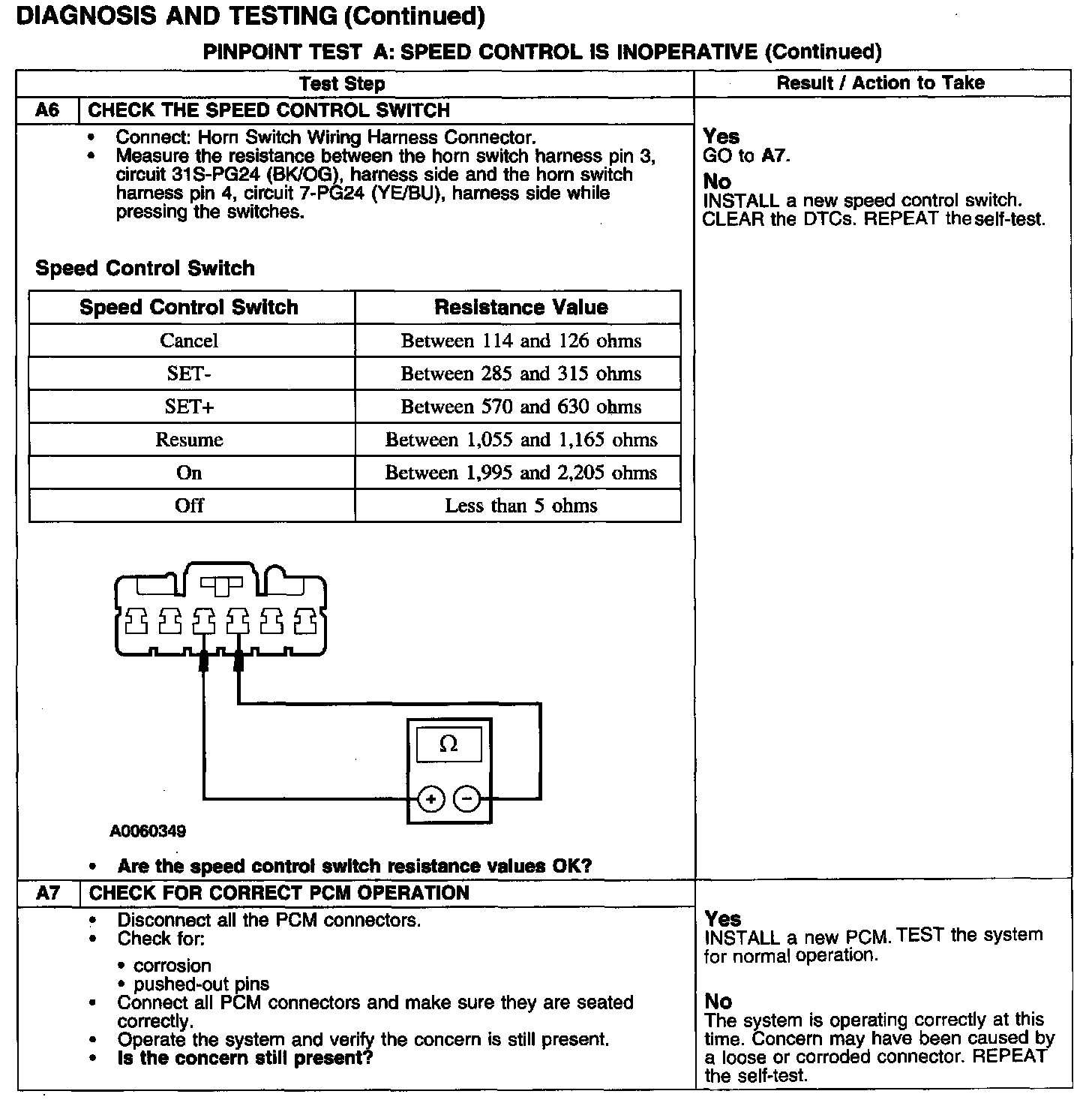 PINPOINT TEST A: THE SPEED CONTROL IS INOPERATIVETest A1: