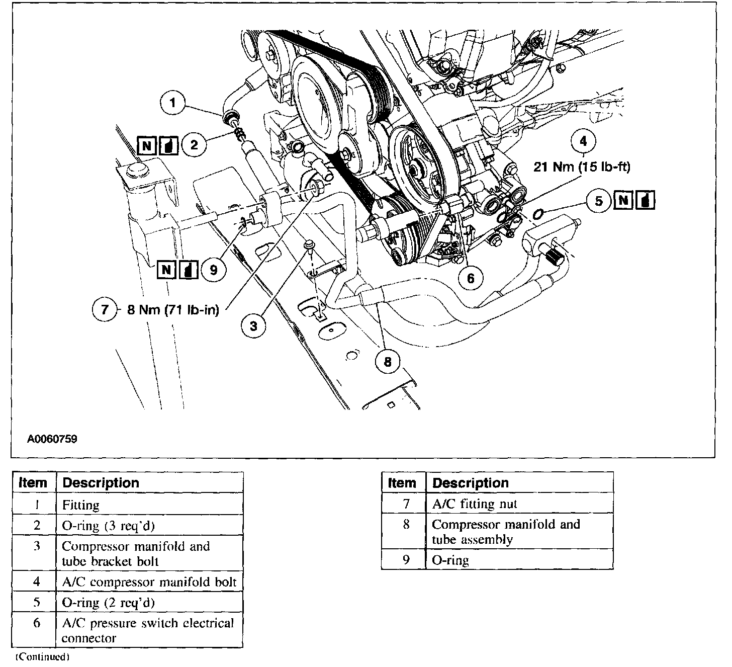 - New O-ring seals, lubricated in clean PAG oil, must be installed before reconnecting any A/C fitting that has been disconnected.
