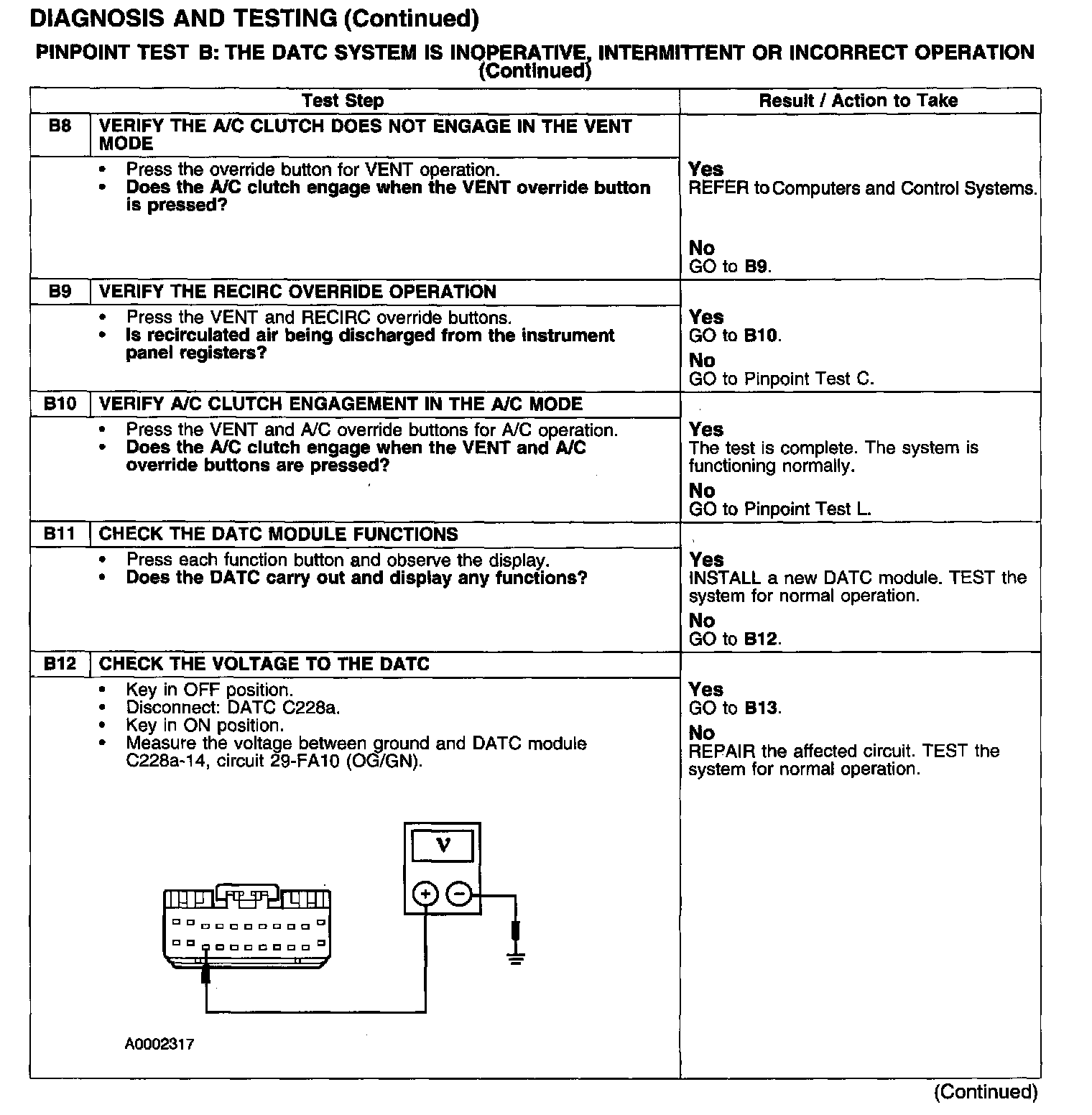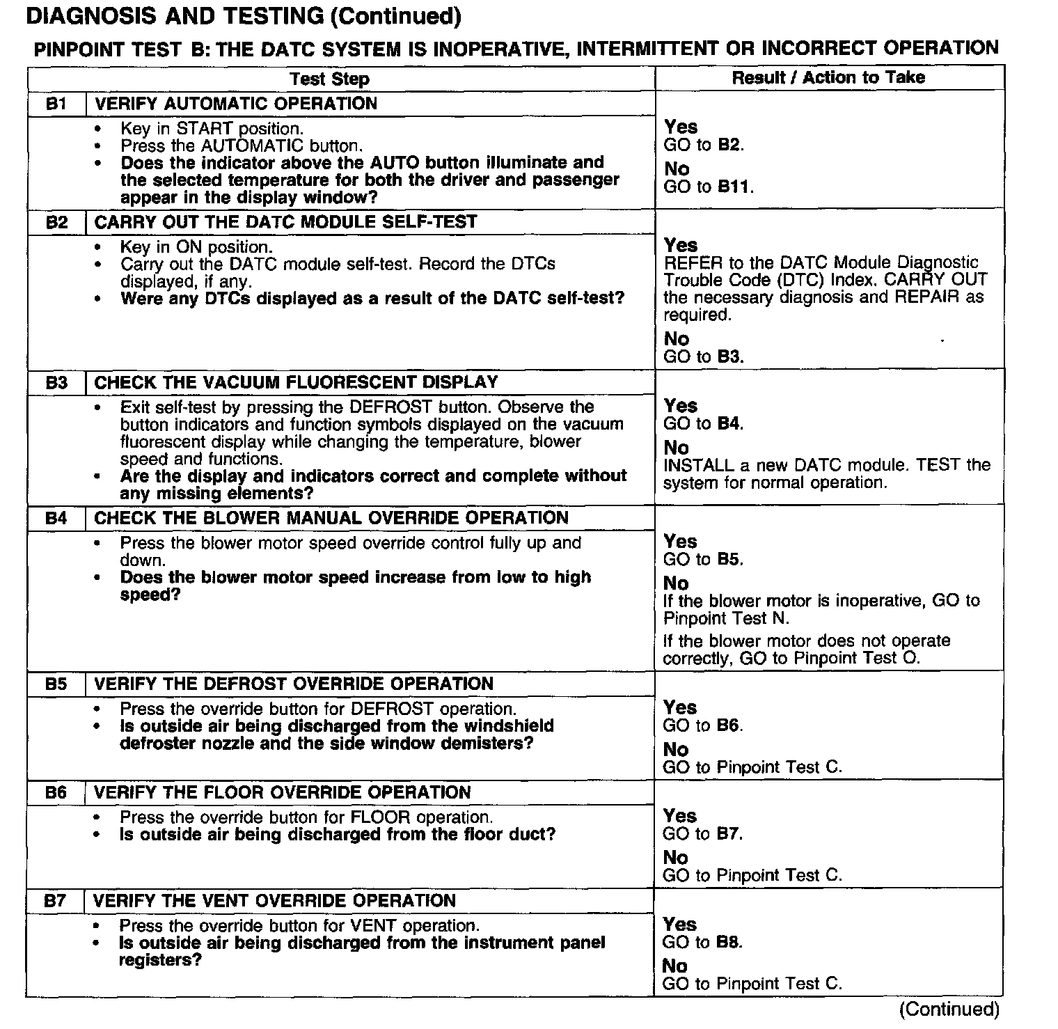PINPOINT TEST B: THE DATC SYSTEM IS INOPERATIVE, INTERMITTENT OR INCORRECT OPERATIONTest B1-B7: