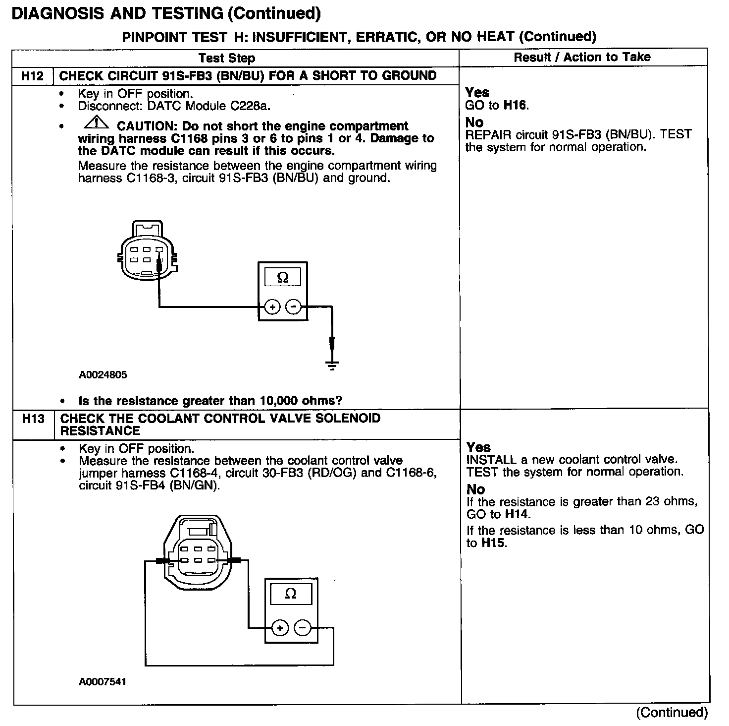 PINPOINT TEST H: INSUFFICIENT, ERRATIC OR NO HEATTest H1-H4: