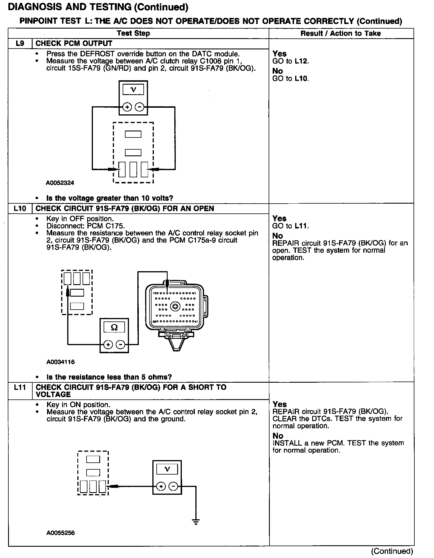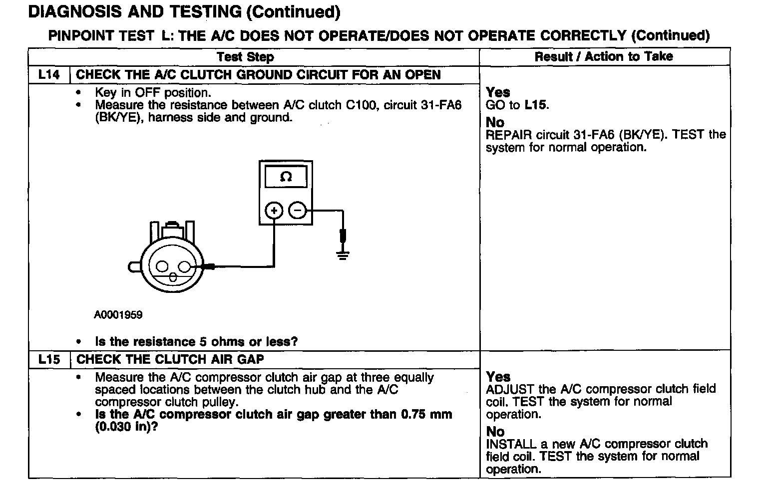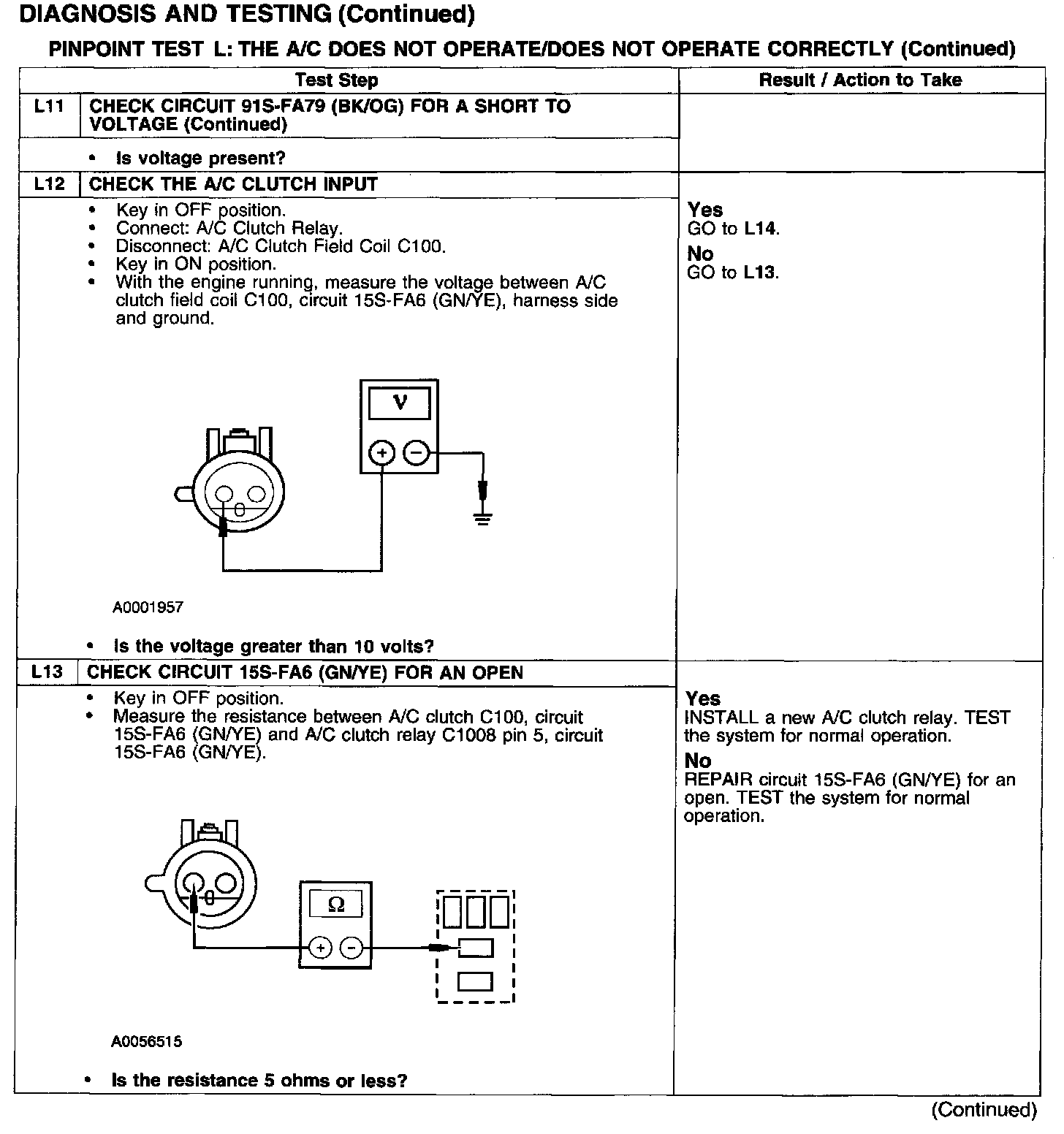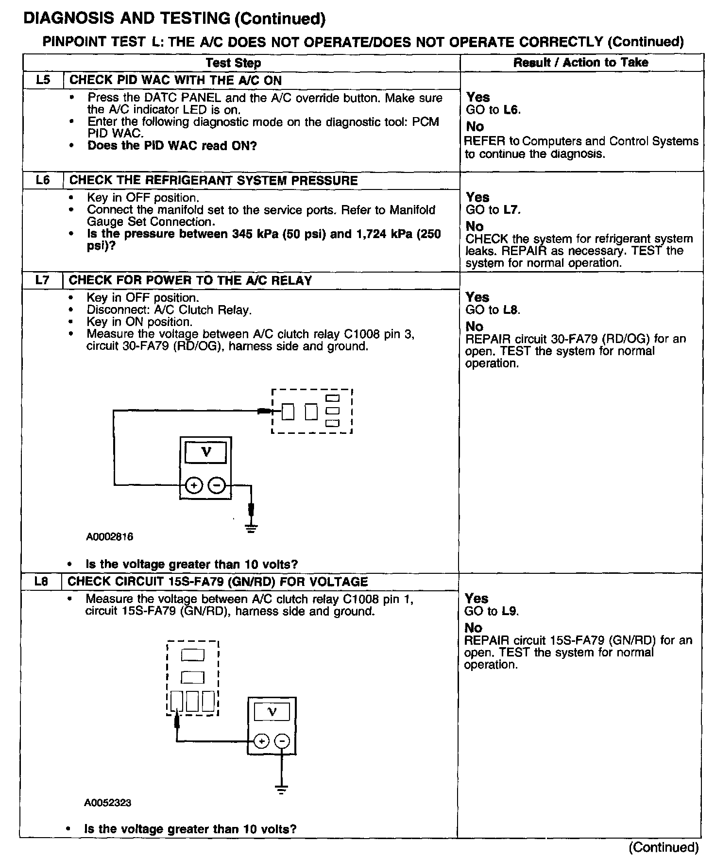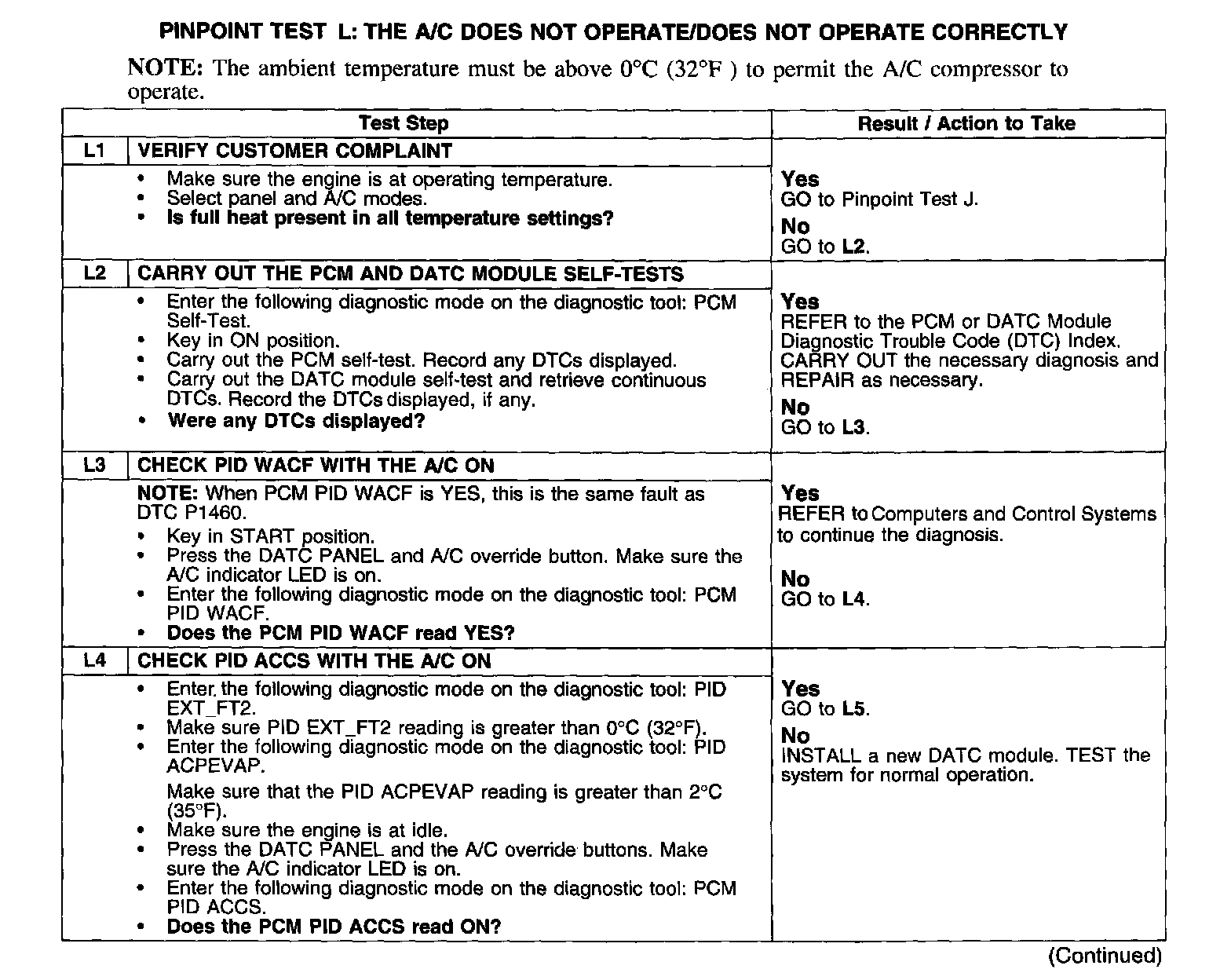 PINPOINT TEST L: THE A/C DOES NOT OPERATE/DOES NOT OPERATE CORRECTLYTest L1-L4: