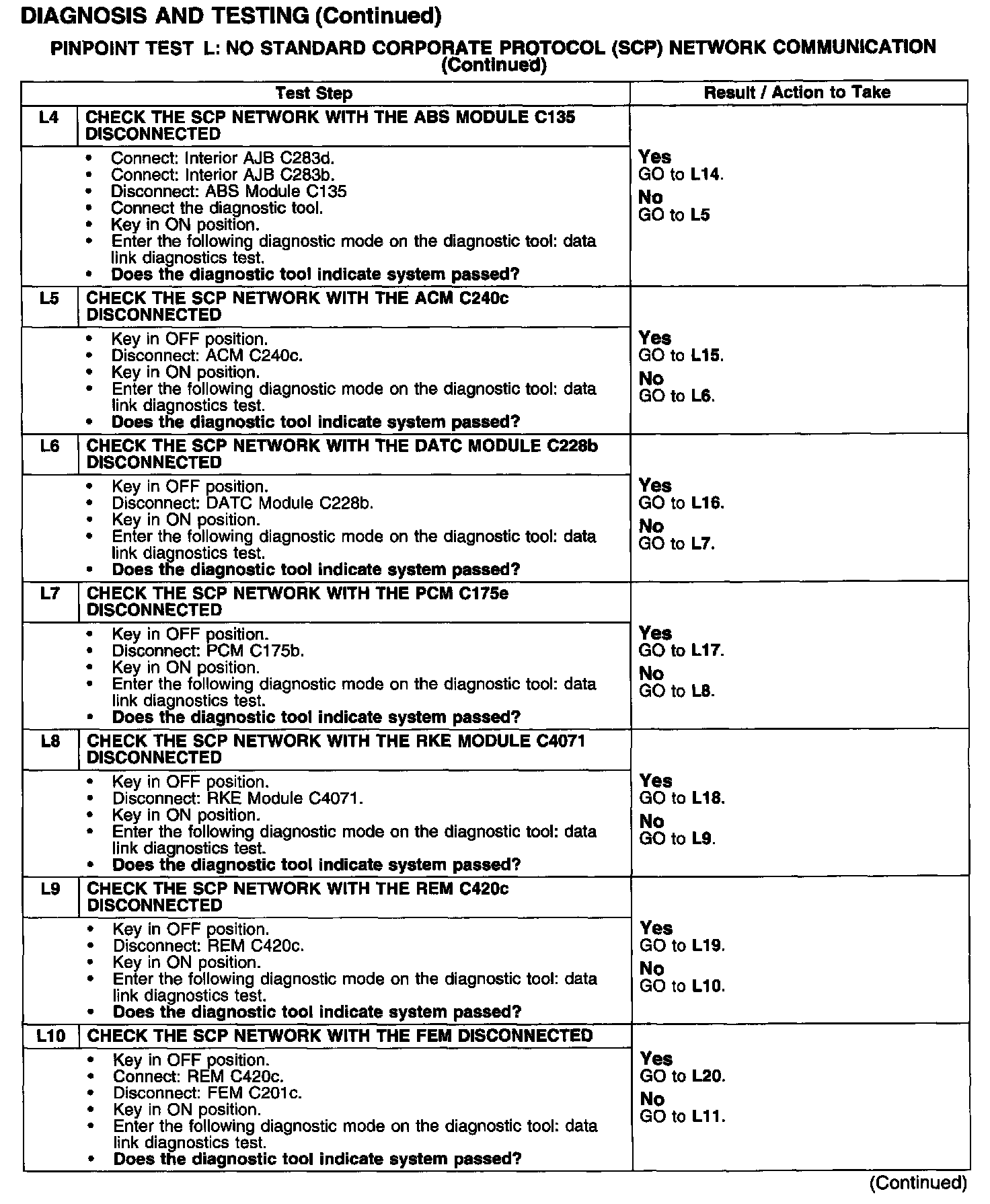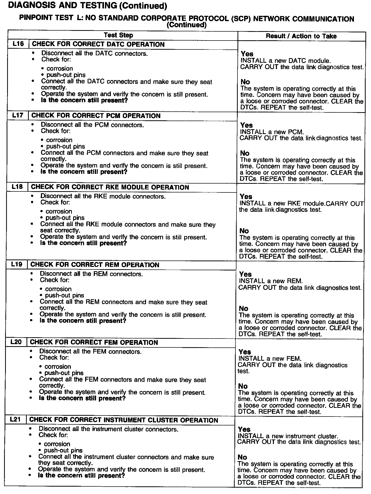 PINPOINT TEST L: NO STANDARD CORPORATE PROTOCOL (SCP) NETWORK COMMUNICATIONTest L1-L2: