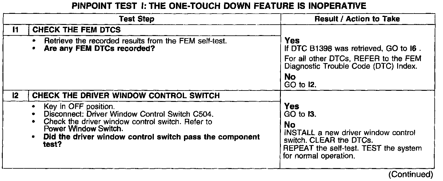 PINPOINT TEST I: THE ONE-TOUCH DOWN FEATURE IS INOPERATIVETest I1-I2: