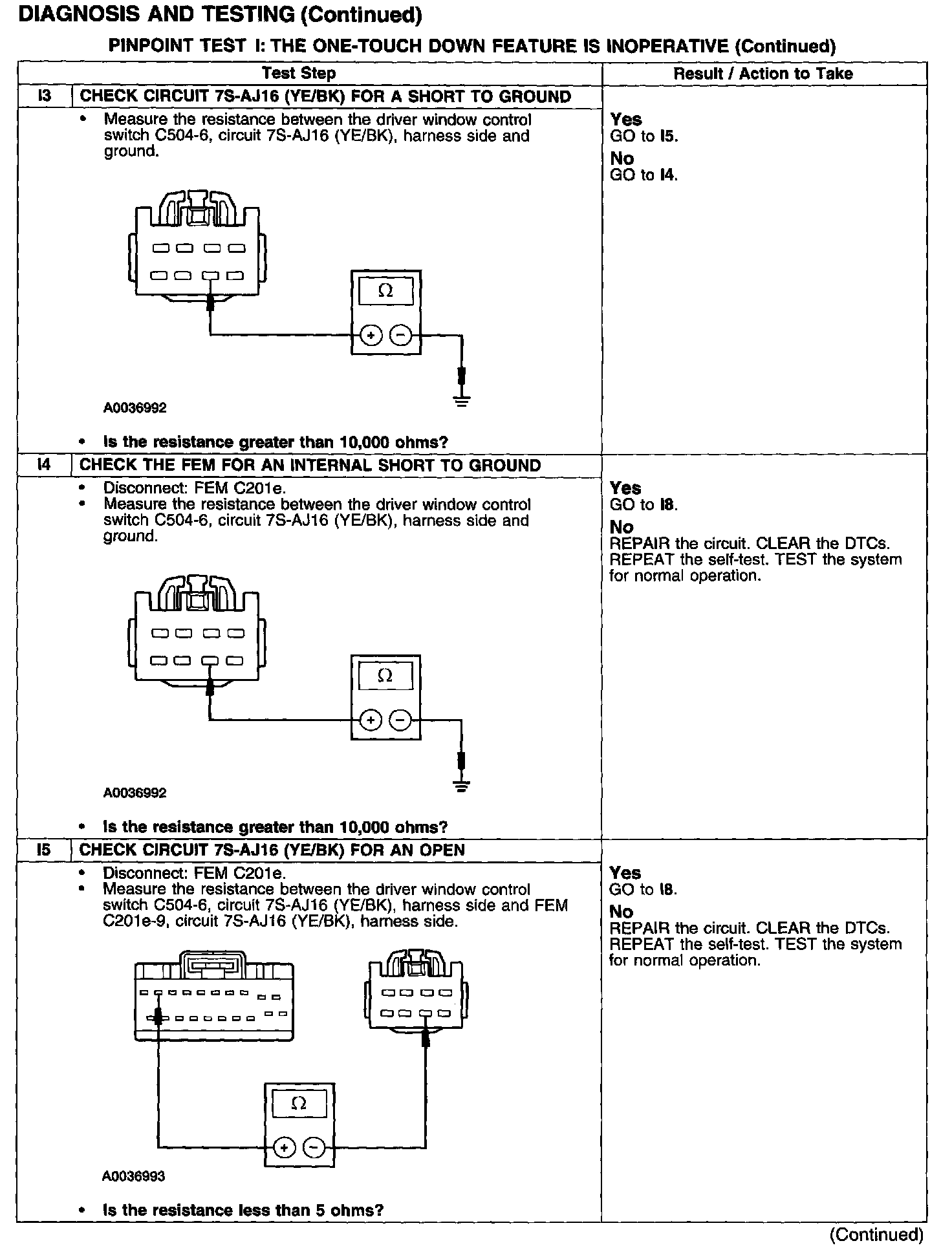 - circuit 7S-AJ16 (YE/BK) open, short to battery or short to ground