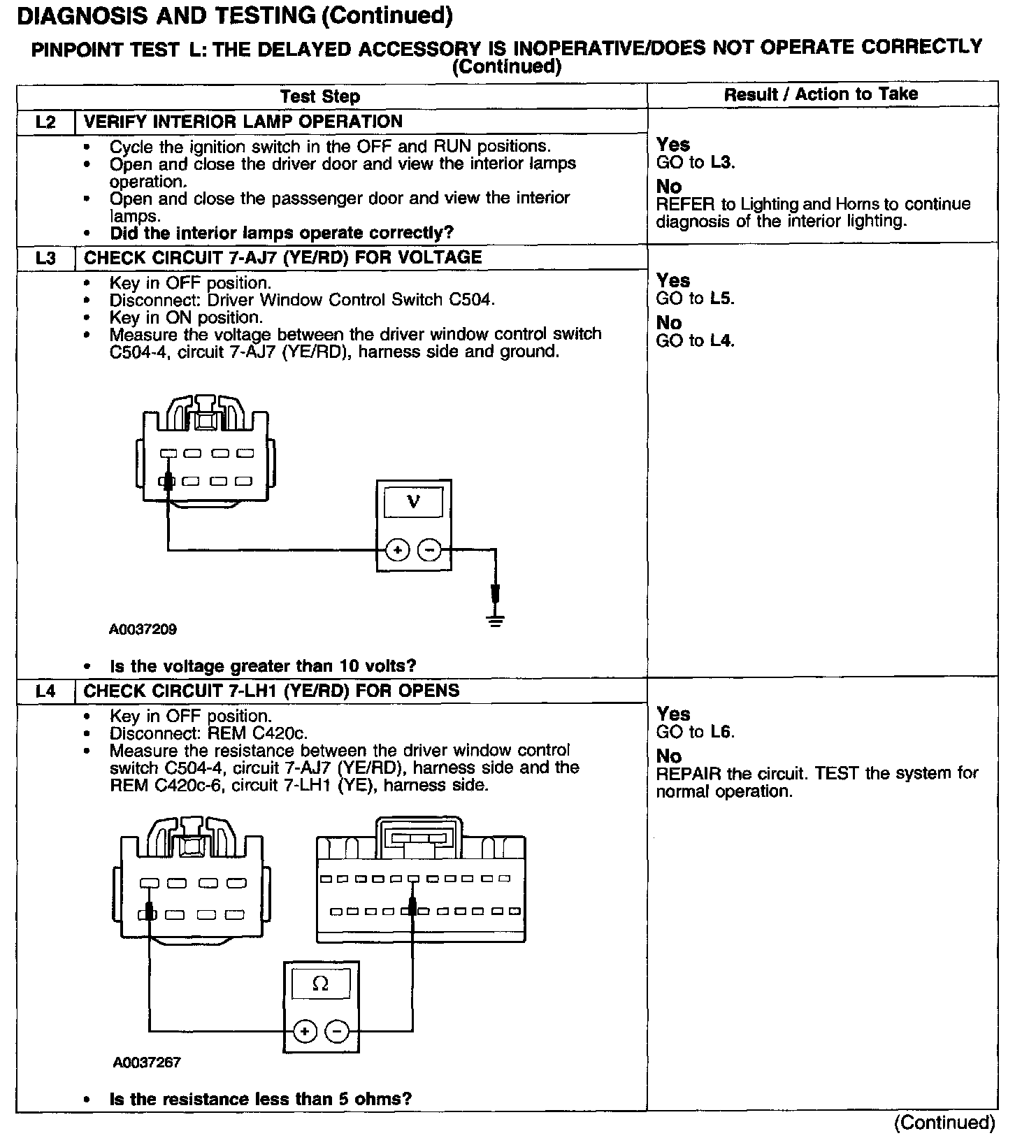PINPOINT TEST L: THE DELAYED ACCESSORY IS INOPERATIVE/DOES NOT OPERATE CORRECTLYTest L1: