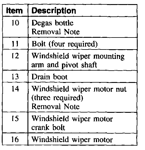 Item 14: Windshield Wiper Motor Nut Removal Note