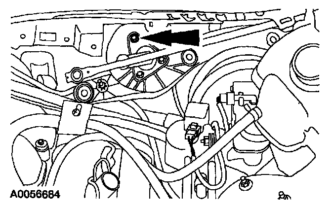 3. Remove the windshield wiper motor top bolt and remove the wiper motor crank bolt.