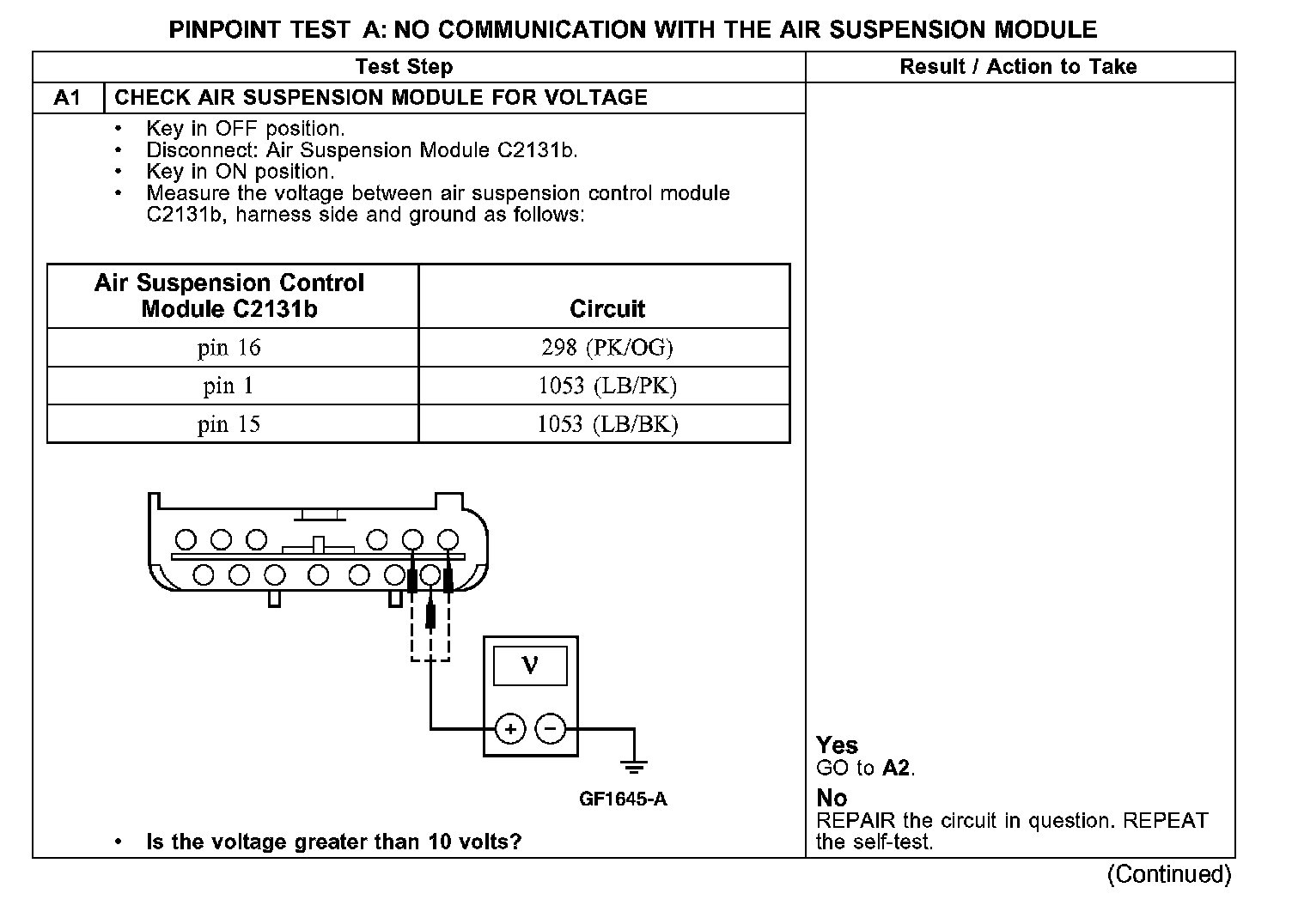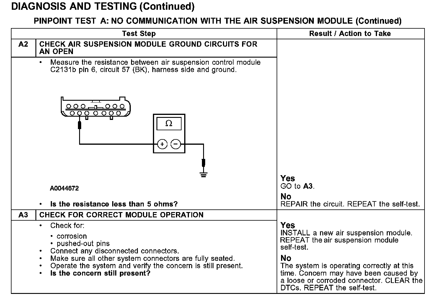 PINPOINT TEST A: NO COMMUNICATION WITH THE AIR SUSPENSION MODULE