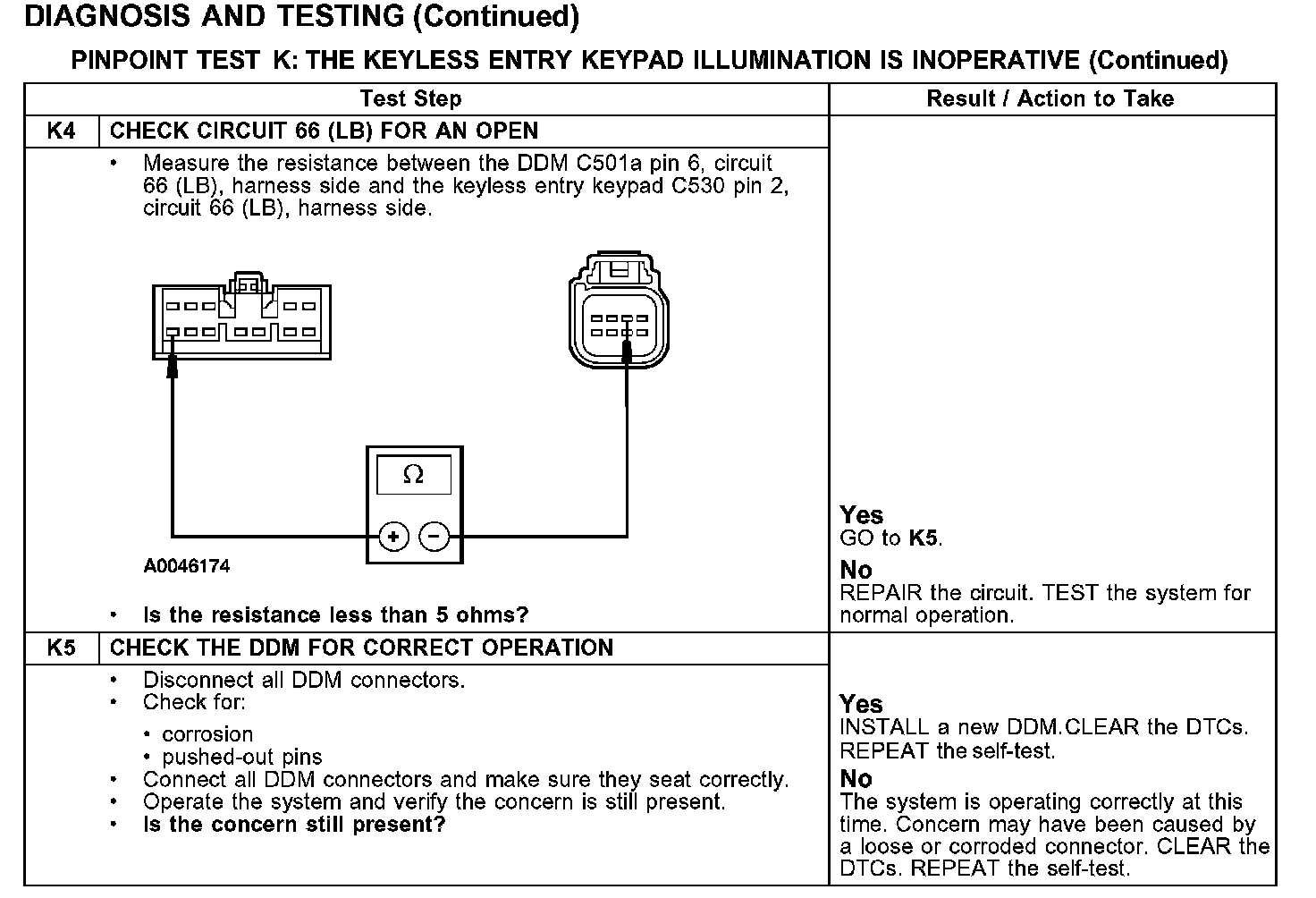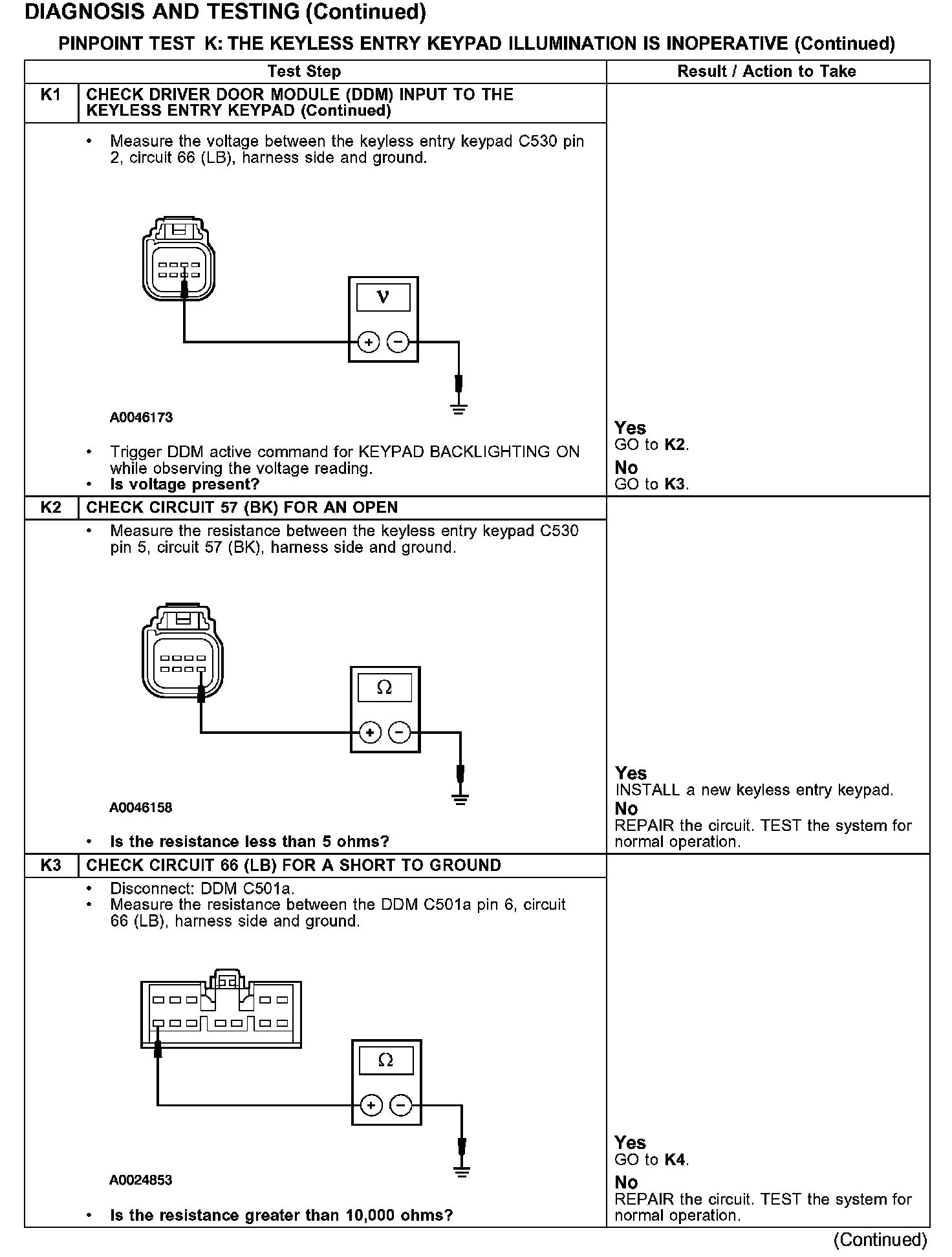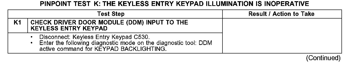 PINPOINT TEST K: THE KEYLESS ENTRY KEYPAD ILLUMINATION IS INOPERATIVE