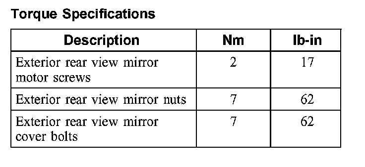 Torque Specifications: