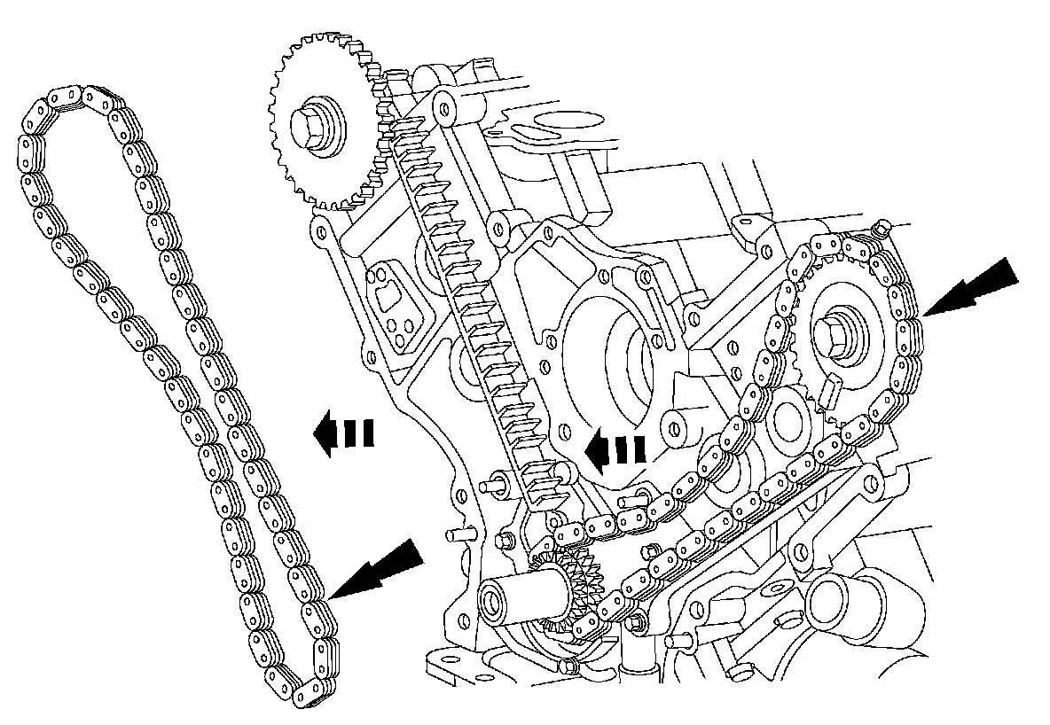 ^ Remove the RH timing chain from the crankshaft sprocket.