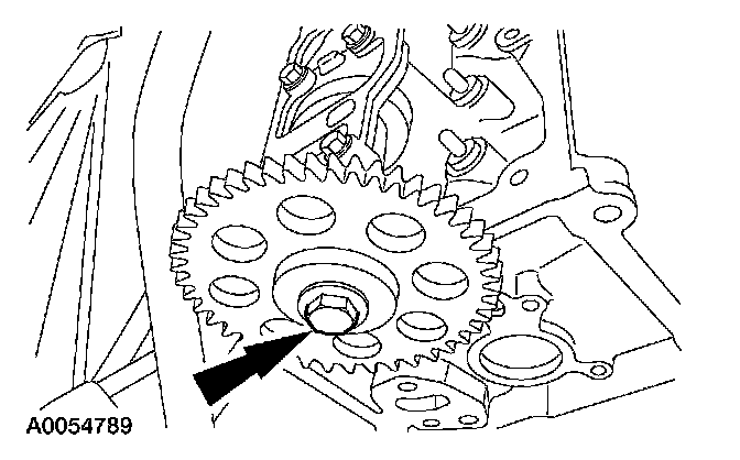 8. Install the camshaft sprockets and new bolts. Tighten the bolts in two stages.